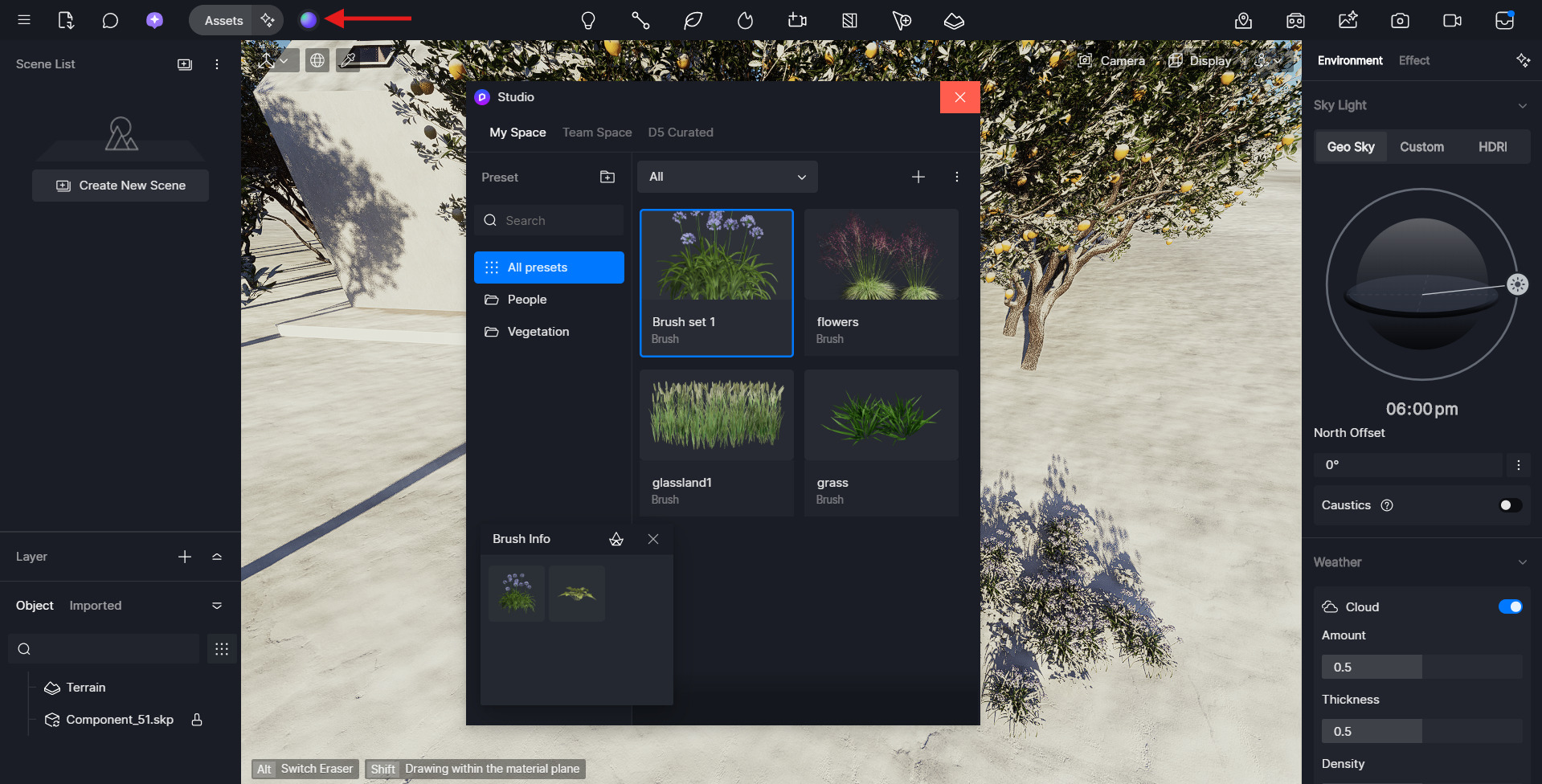 You can create a preset of your configured assets using Brush tool and save it to My Space Studio. This allows you to quickly reuse your setup in future projects, which can help streamline your workflow.