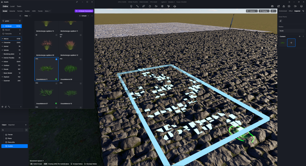 Advanced Brush doesn’t take into account geometry displaced by real displacement unlike Scatter.