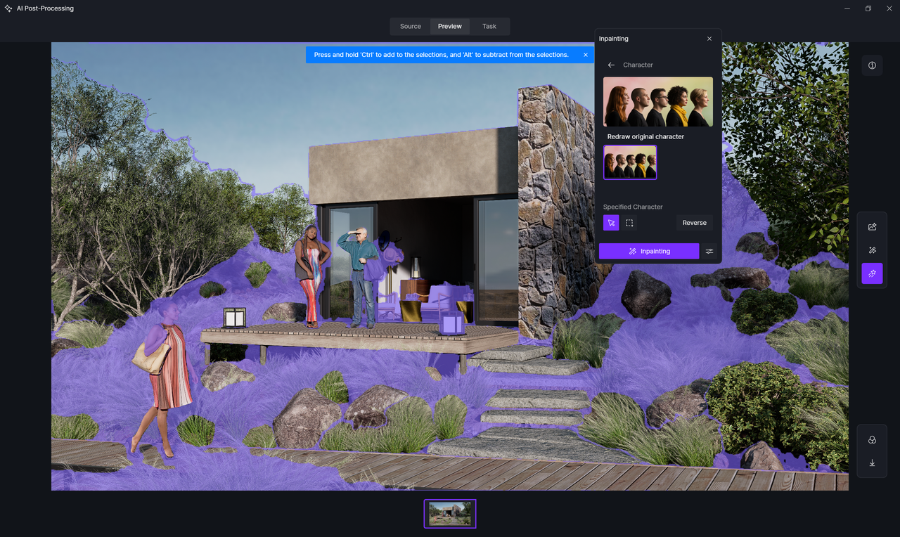When in AI post-processing the AI character inpainting is not working as per attached image. I selected the person and in character mode and all the surrounding areas get selected. Please help