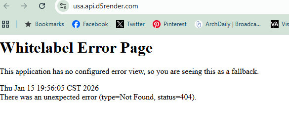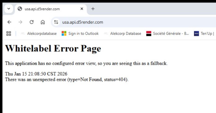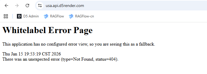 Sorry for any inconvenience caused. Can you please type 【 https://usa.api.d5render.com/ 】in your Browser, and please share the result with me. Any update will be appreciated.