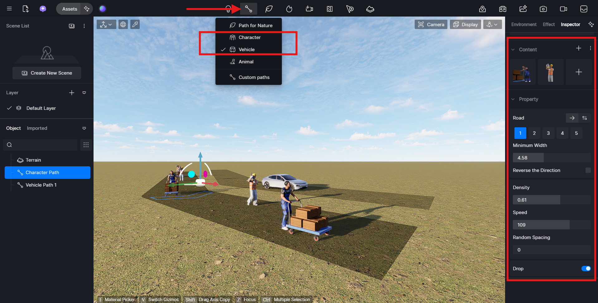 You can try using our custom path tool for both characters and vehicles when animating movement.