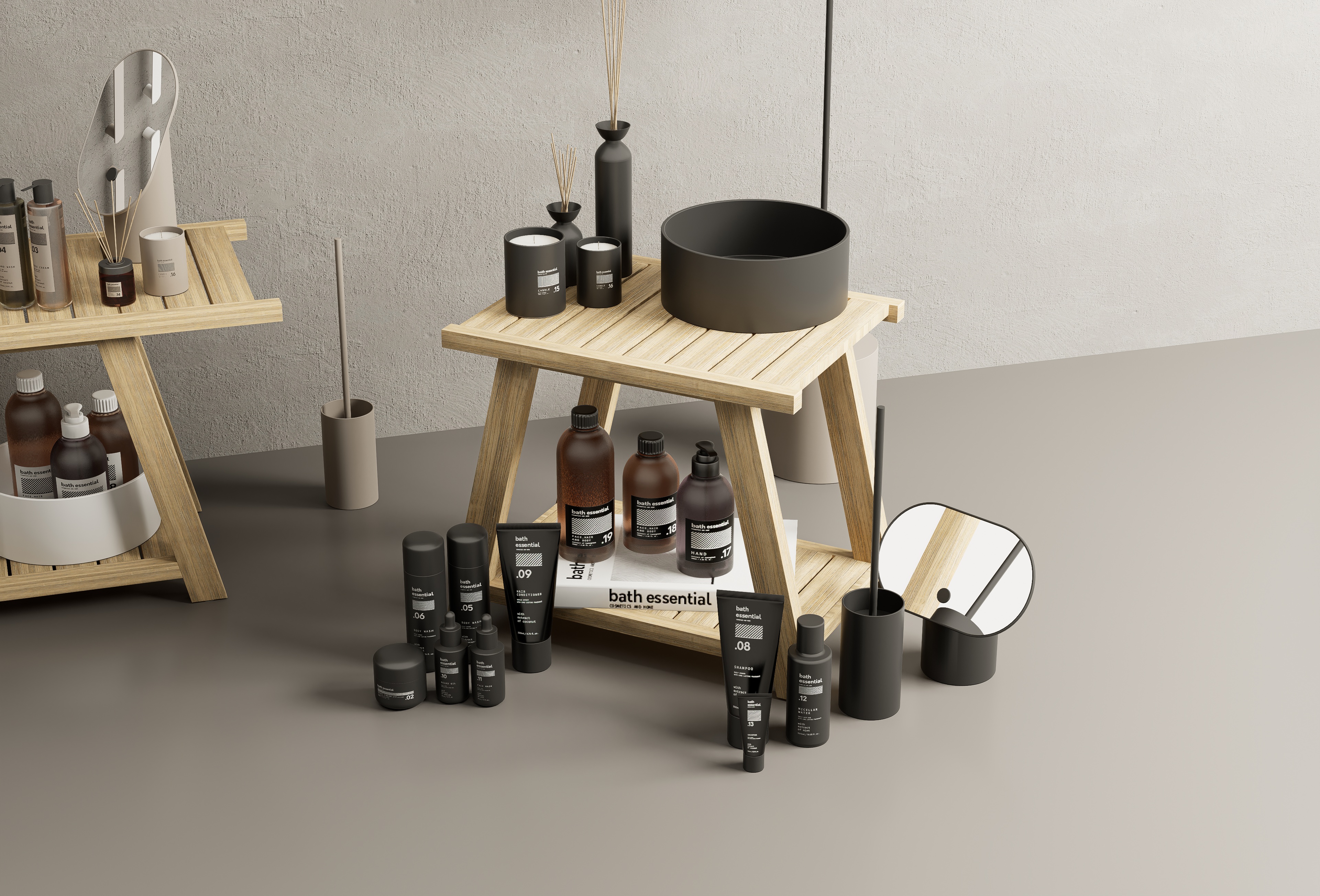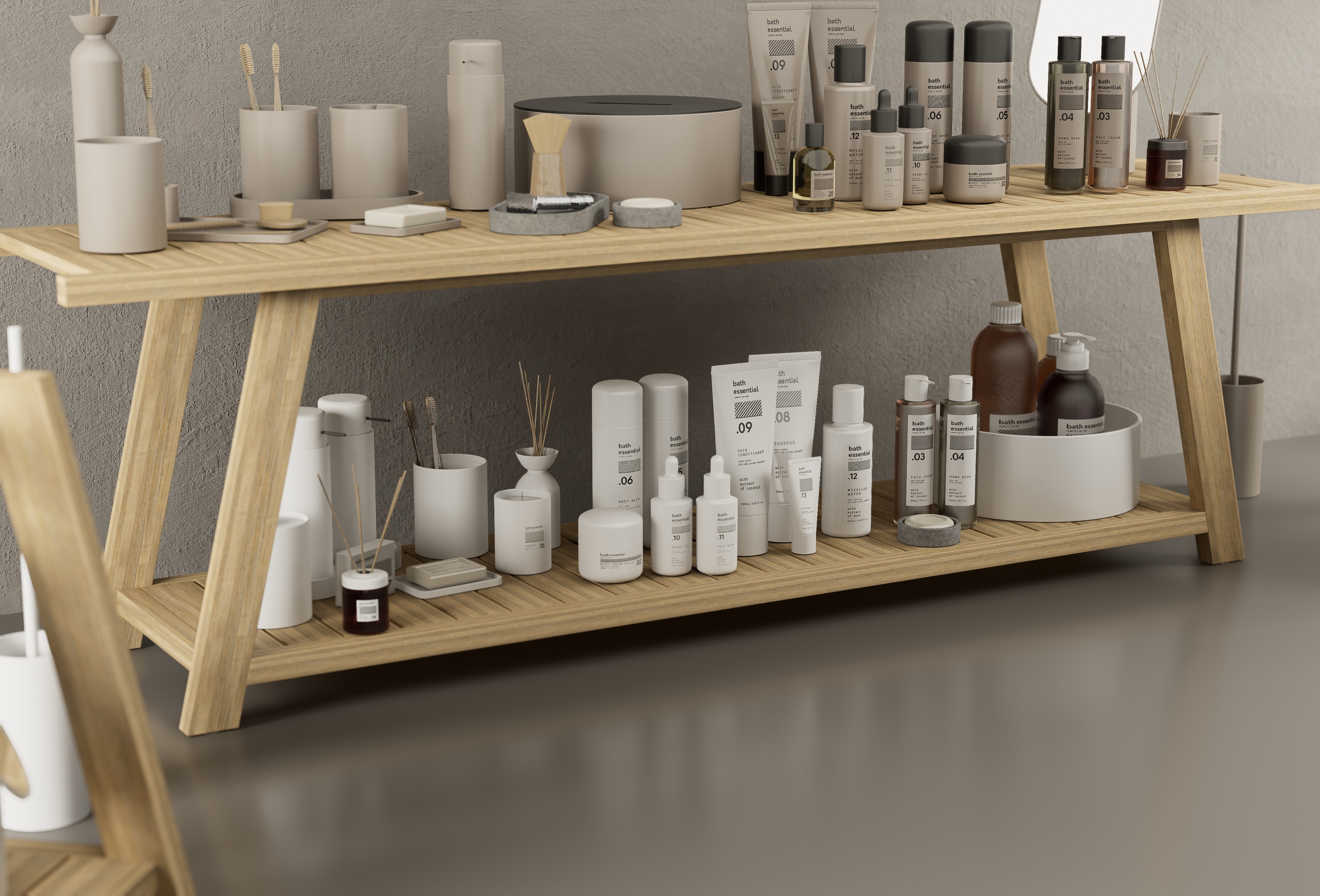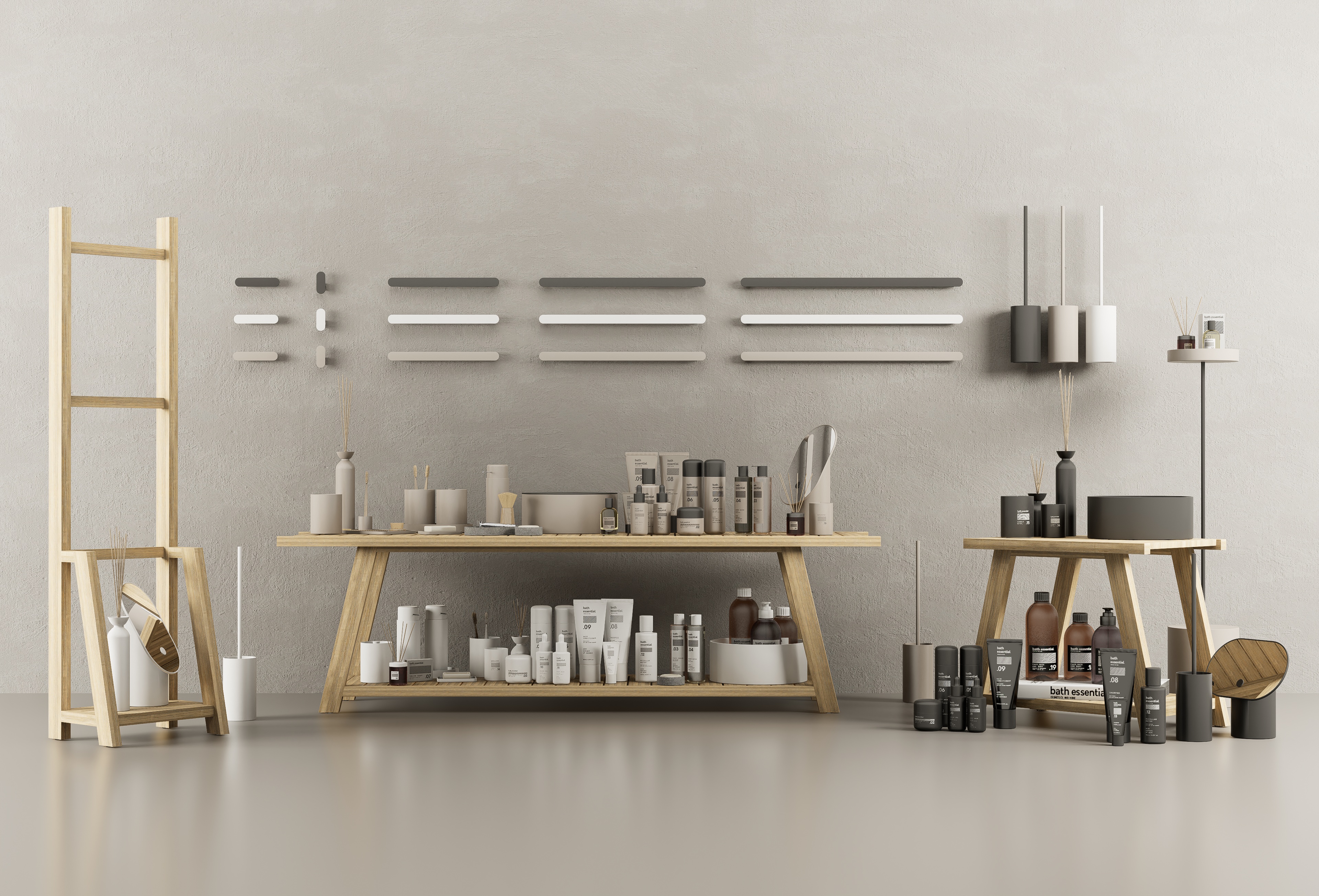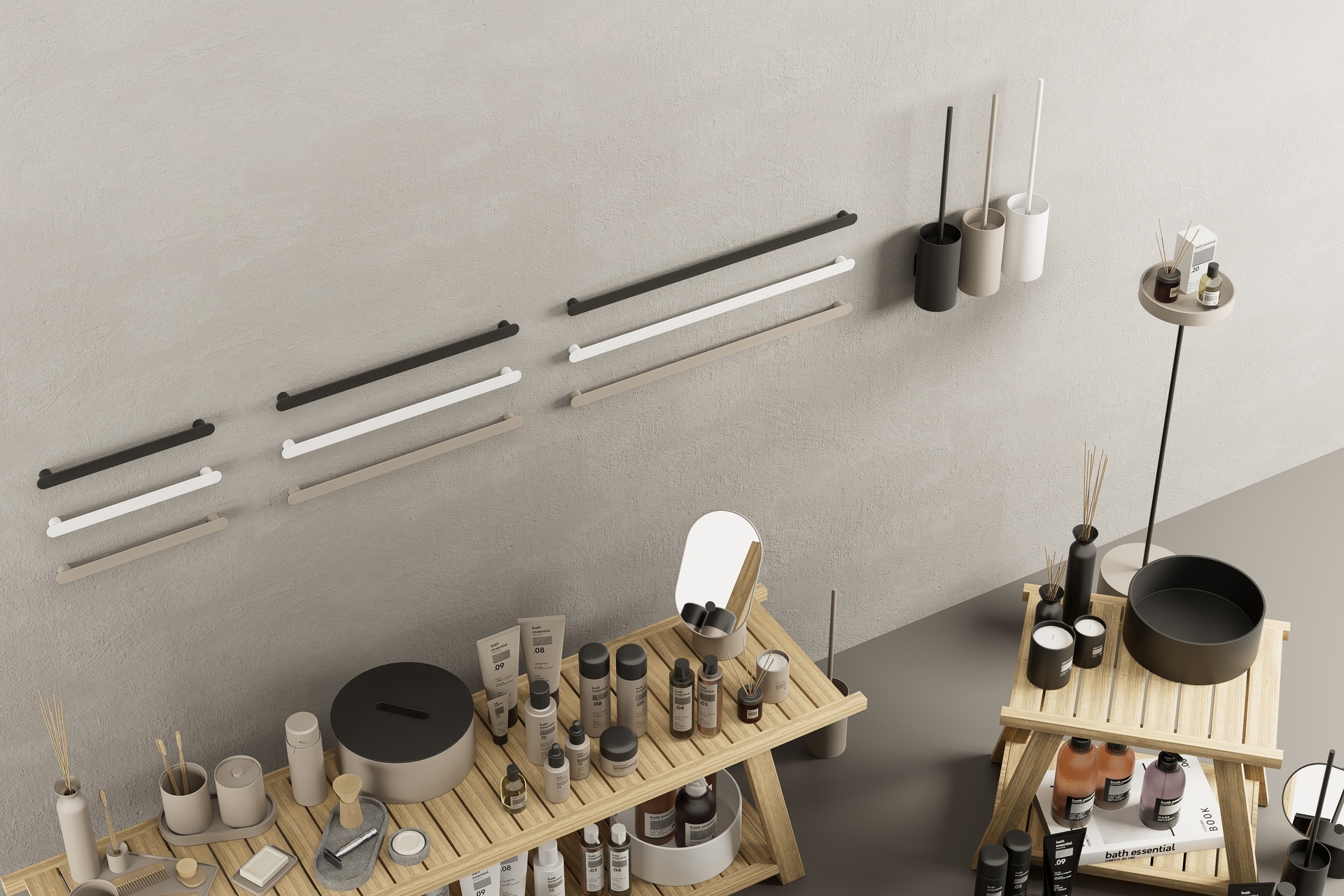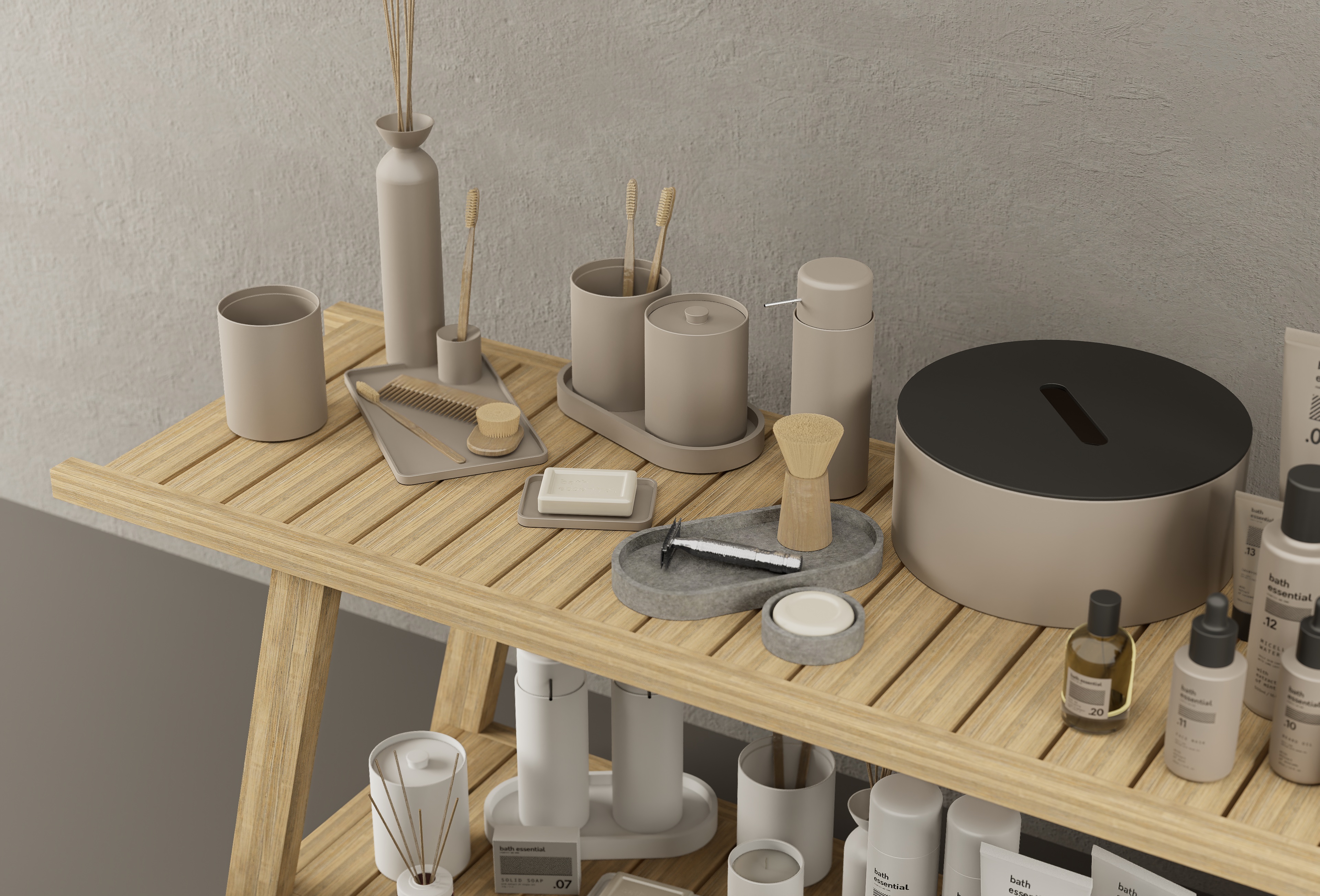 Bath Essentials is a set of bathroom accessories and cosmetics ready for D5Render (3.0.0).The set has been revamped with a substantial update for a total of 143 models, 44 of which come in 3 colours: white, black and taupe to suit any setting.