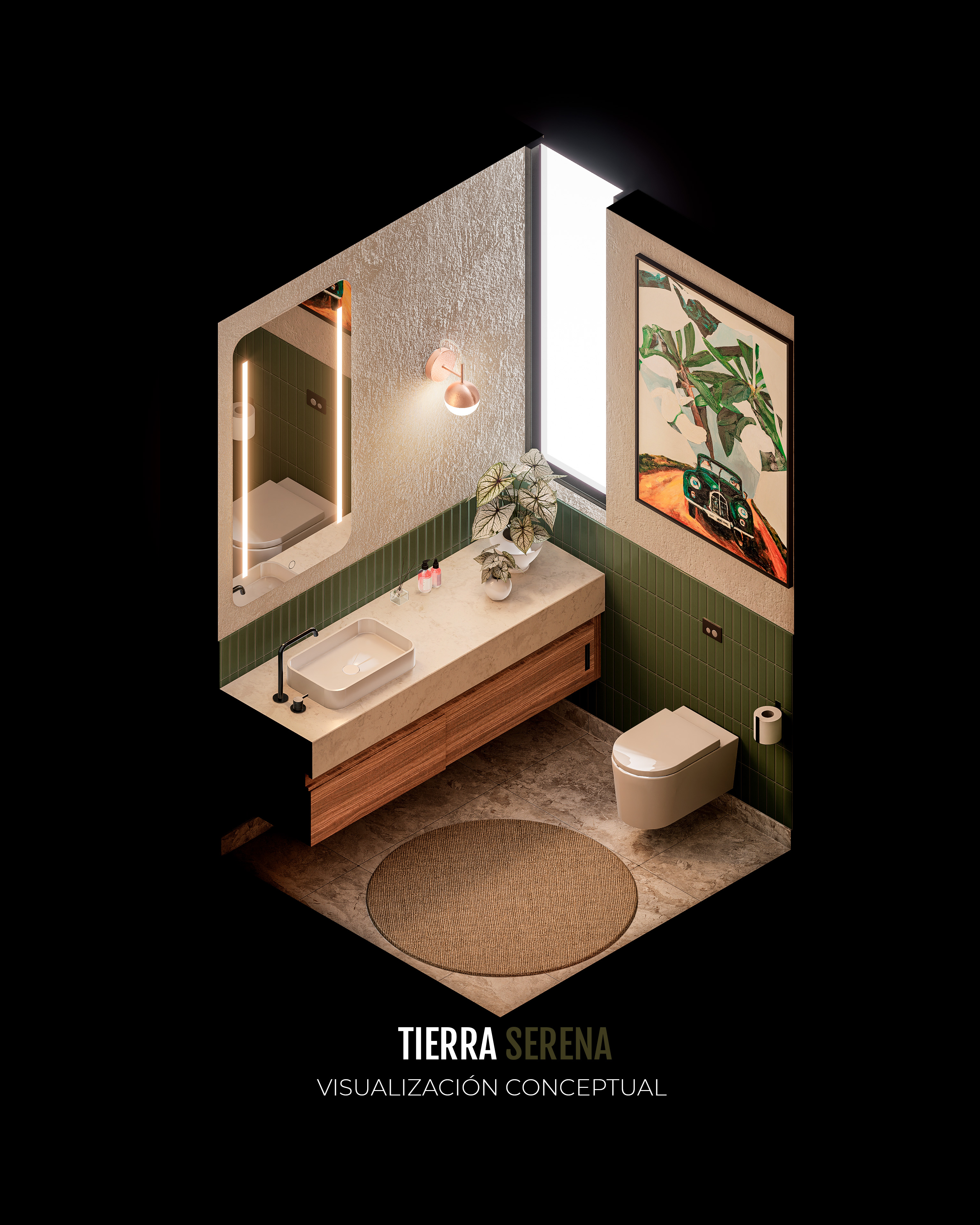 Description of the work: Conceptual interior design for a guest half-bathroom.