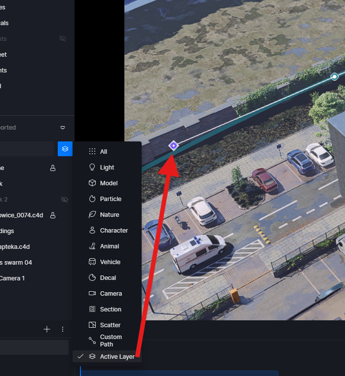 Camera path tangents cannot be selected if Active Layer filtering is enabled