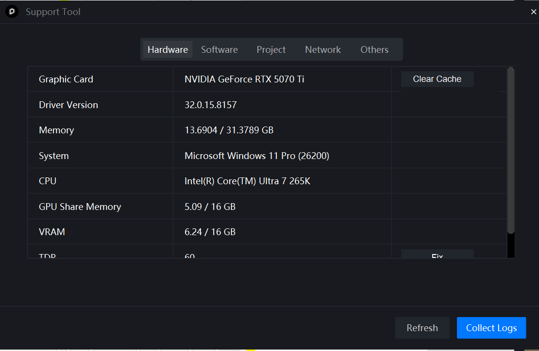 2. System hardware info tab showing Windows 11 Pro (26200), RTX 5070 Ti, and Intel Core Ultra 7 265K.
