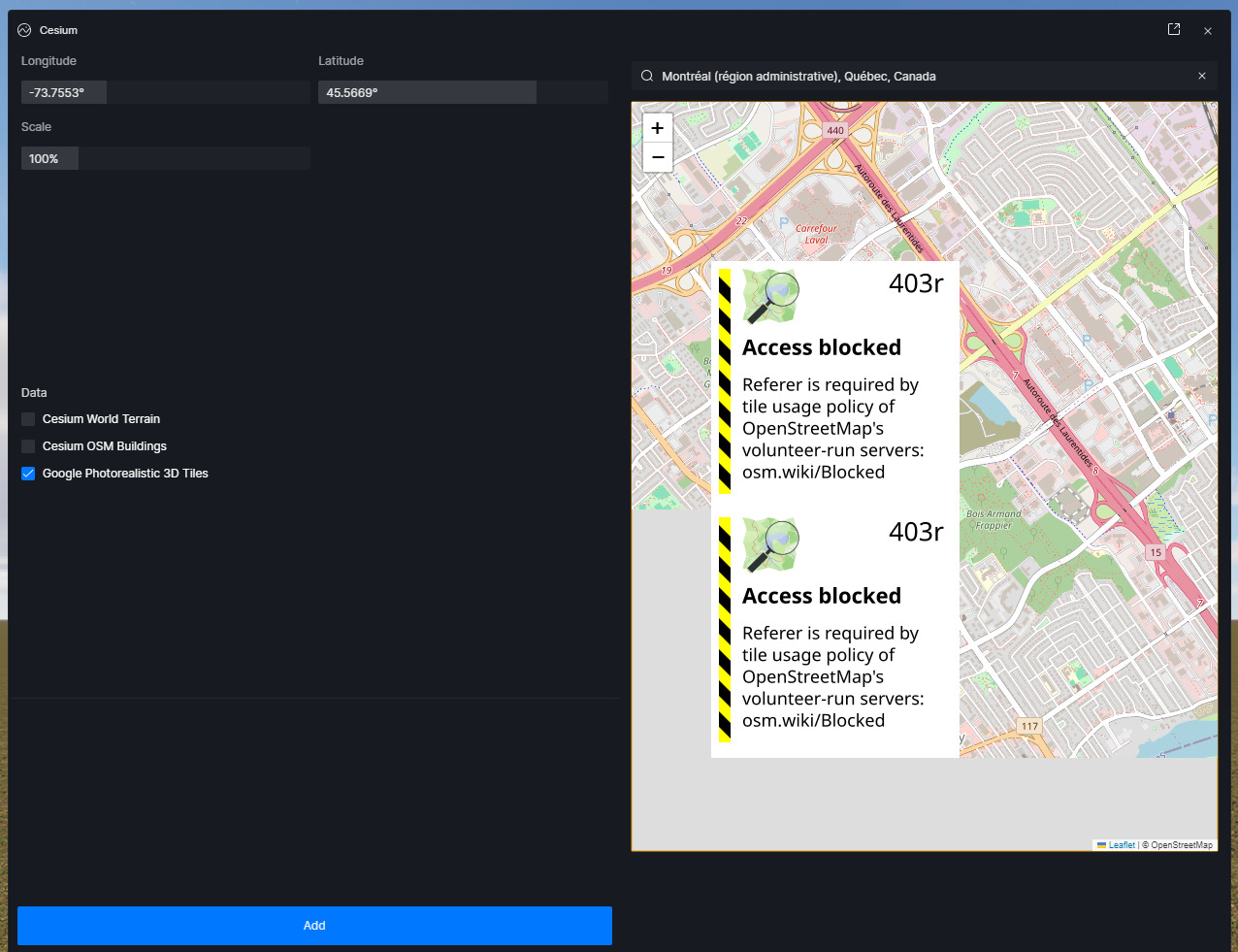 Access blocked Referer is requires by title usage policy of OpenStreetMaps volunteer-run-servers osm.wiki/blocked…