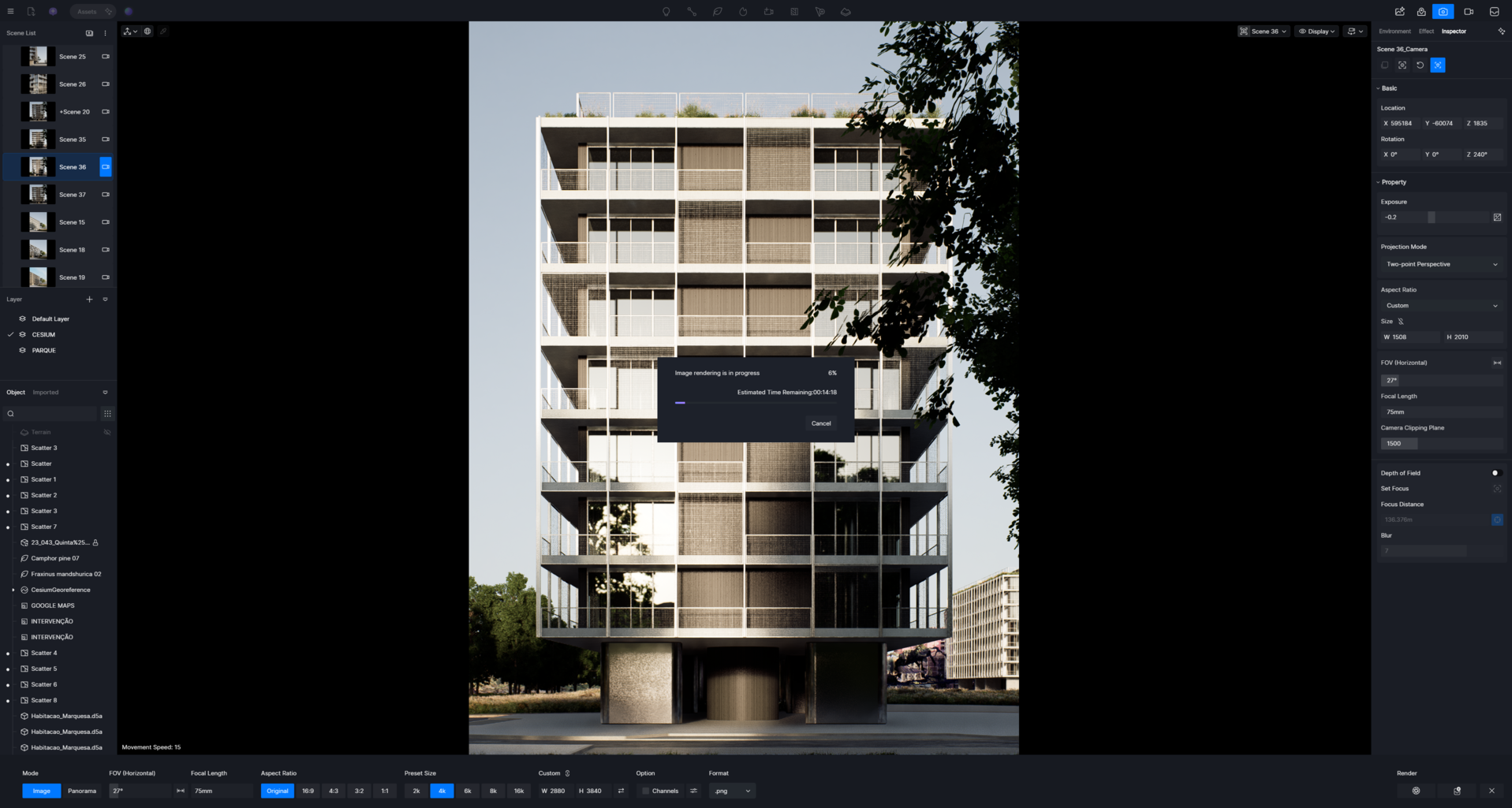 Just curious, is it any different if you try to render at different focal lengths? I’ve noticed D5 simply will not finish the render if I render anything higher than a ~40mm focal length with Cesium on.