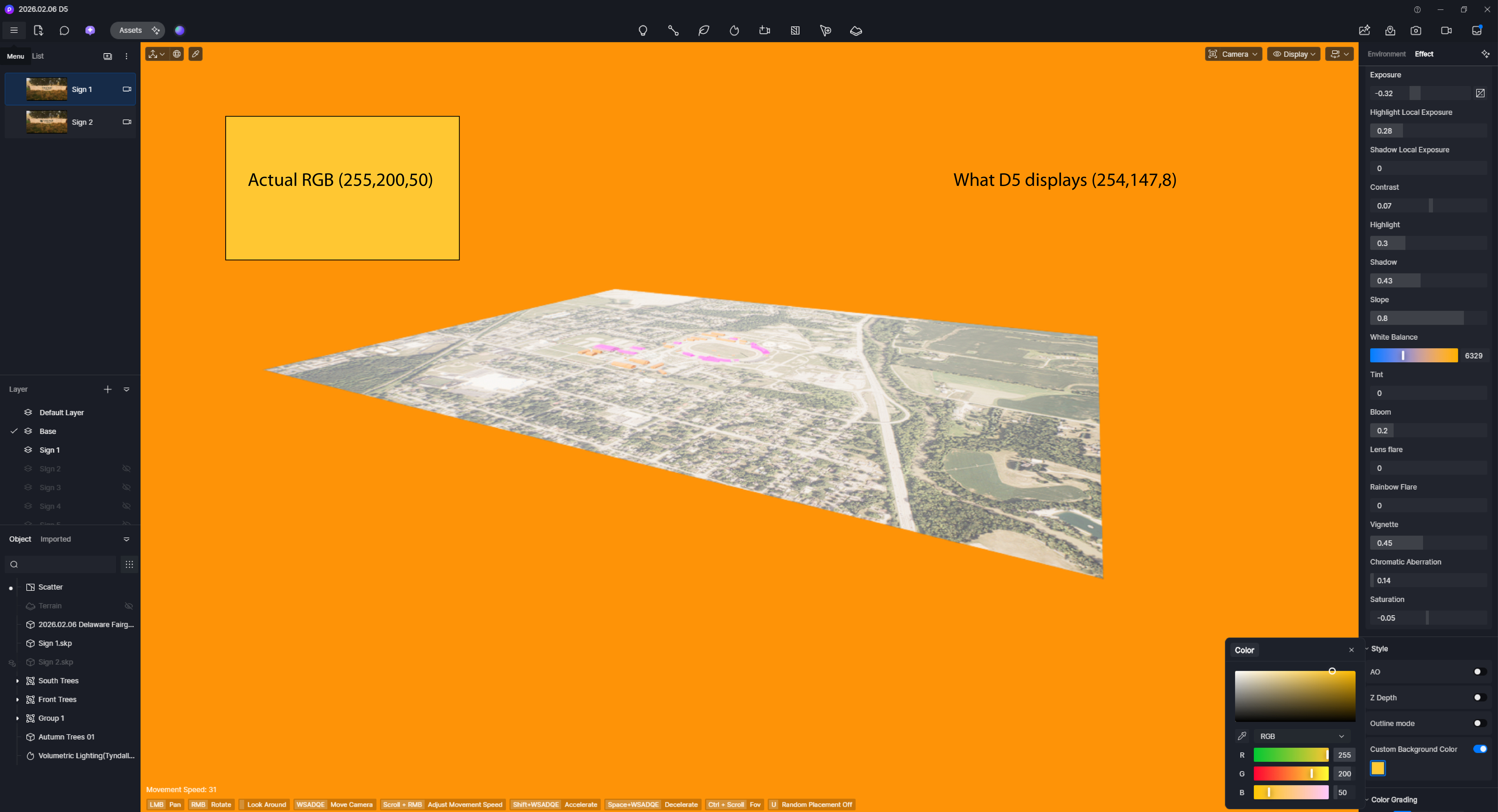 I tried using the new Custom Background Color effect, and noticed that the color is displaying incorrectly. Is this an error on my end, or a software bug?