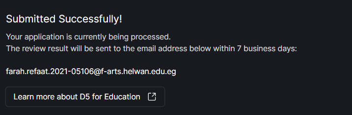 I am a third-year architecture student at Helwan University, and I applied for the Educational License using my official university email (Farah.Refaat.2021-05106@f-arts.helwan.edu.eg).