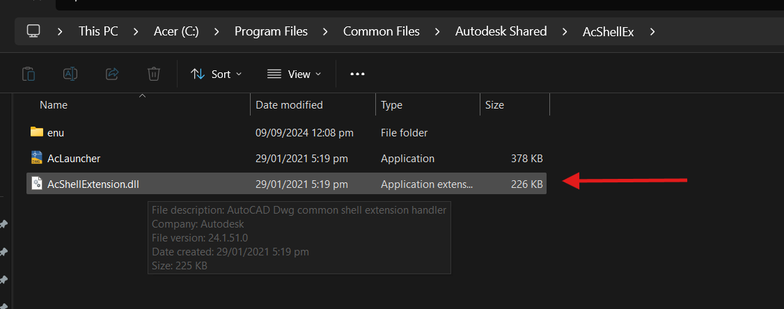 Please rename this: AcShellExtension.dll > AcShellExtension.txt. If the issue persists, please share your logfile with us for further investigation. Apologies for the inconvenience