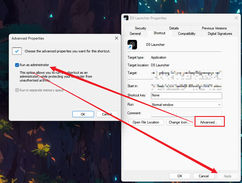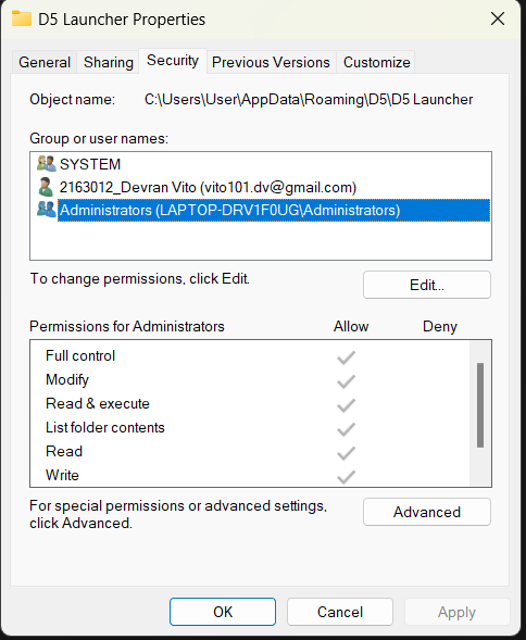 Alright, thanks for providing us with additional information. With that, please try to check if you have full control over the folders where the D5 Launcher and D5.exe are located.