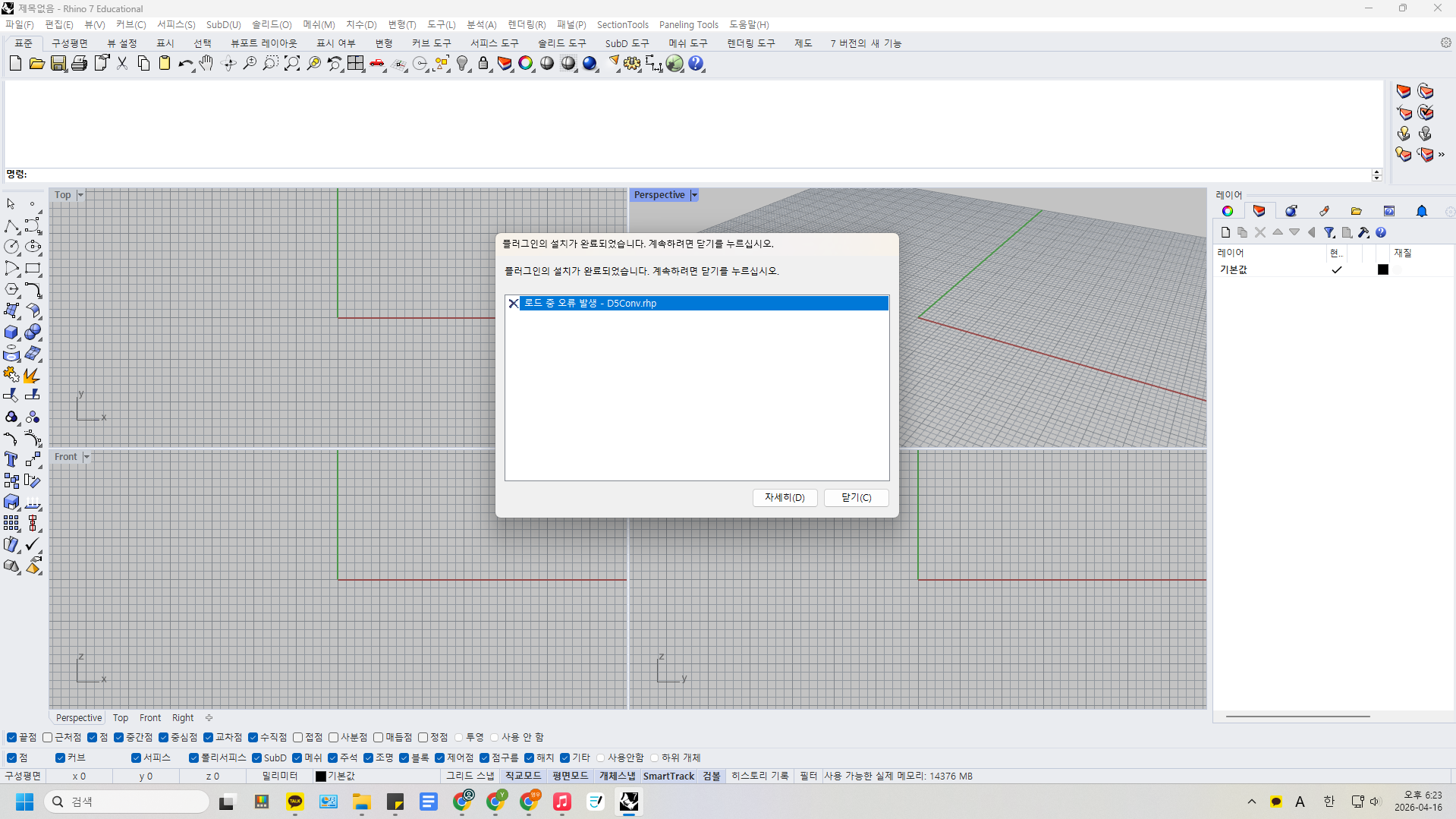 and moreover, I can’t open D5 livesync in Rhino3D 7. When I open Rhino3D, an error message pops up “The translation is ‘the installation of program is finished. click ‘close’ to continue…’ error during loading - d5conv.rhp”