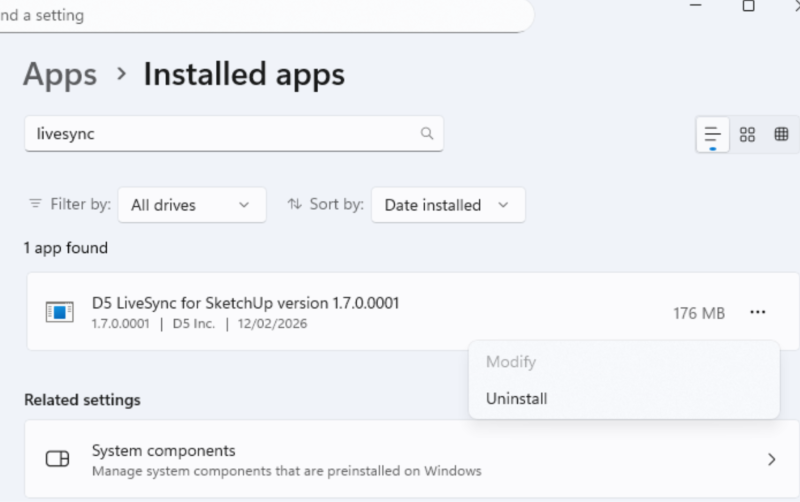 - Please uninstall D5 Livesync via Control Panel or in your Windows settings
