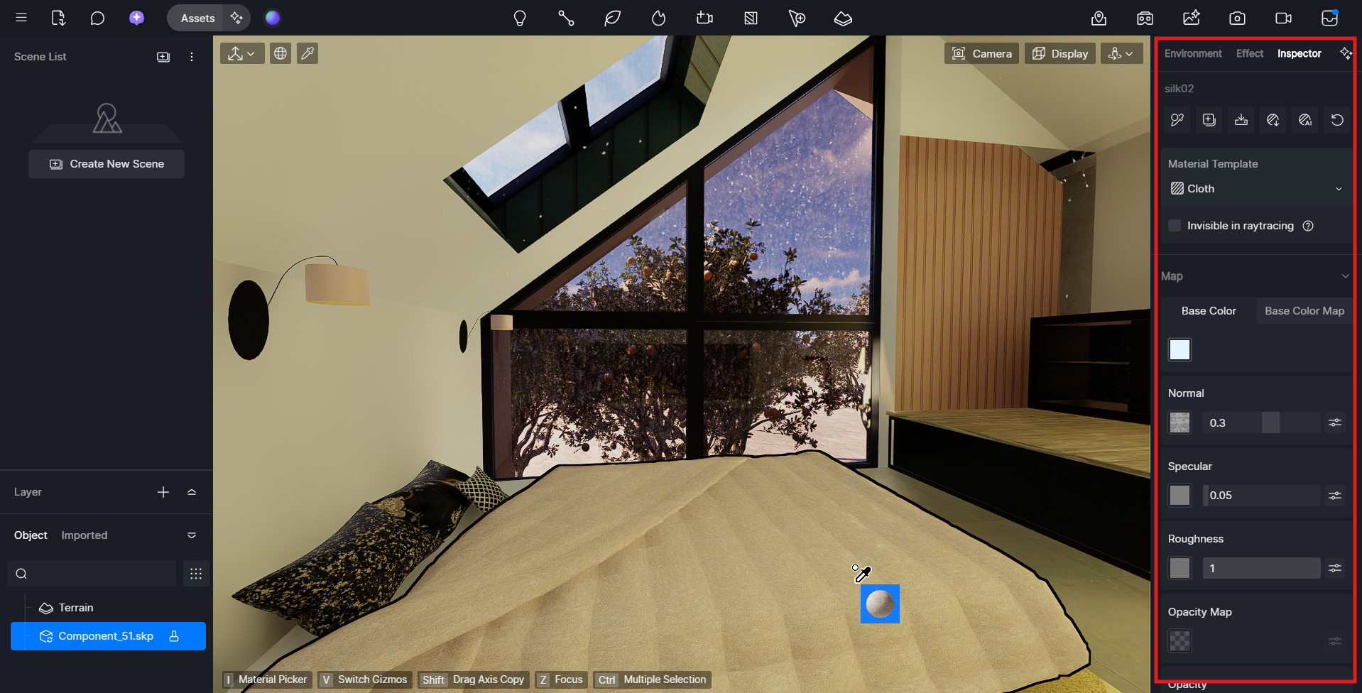 Sorry for the inconvenience. Could you clarify — do you mean that after placing a material, you can’t modify anything in the inspector panel?