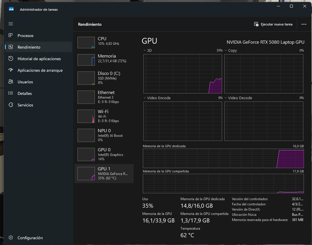 And to answer your other questions: 1. Ive tried this, no change. 2. I also tried this, I even switched betwen the Game Ready and Studio Drivers, no change. 3. I tried this, no change. 4. The laptop model is a MSI Vector 16 HX AI A2XWIG