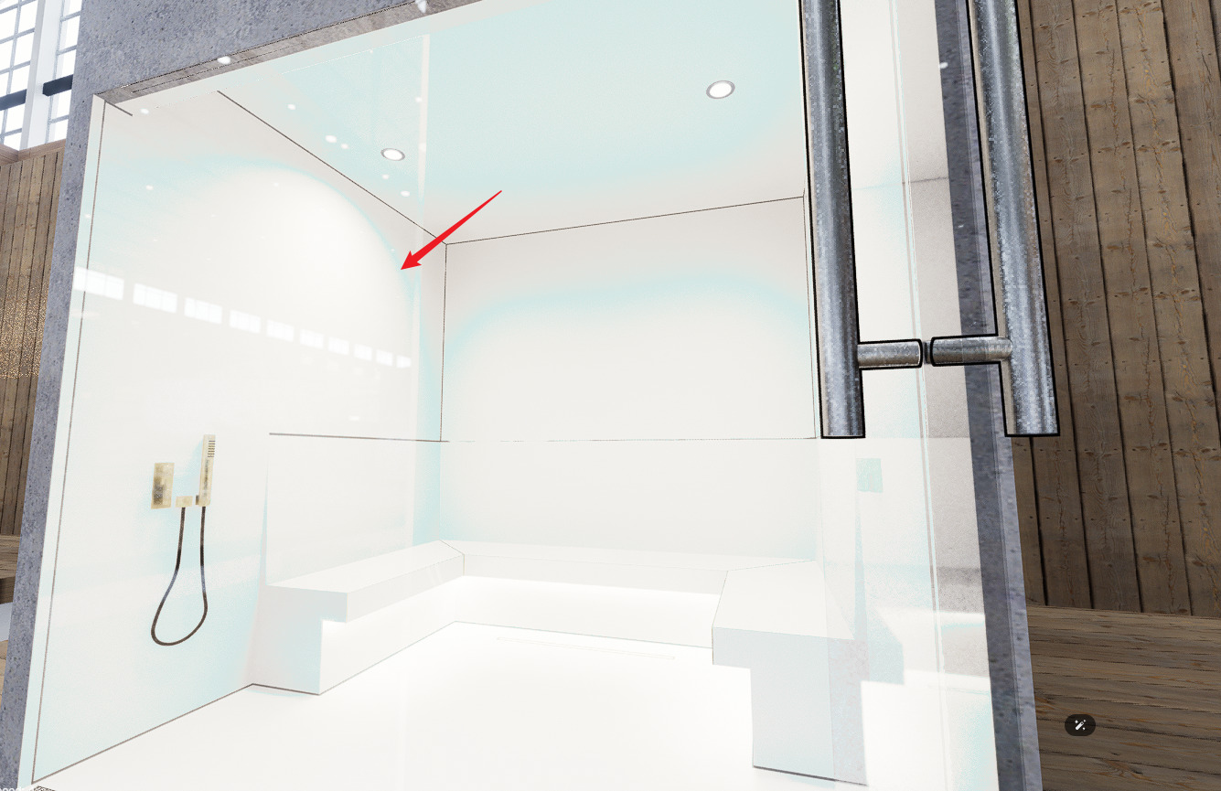 Yes this does appear on the render which I have attached. The example is a Steam room VR I am currently working on: