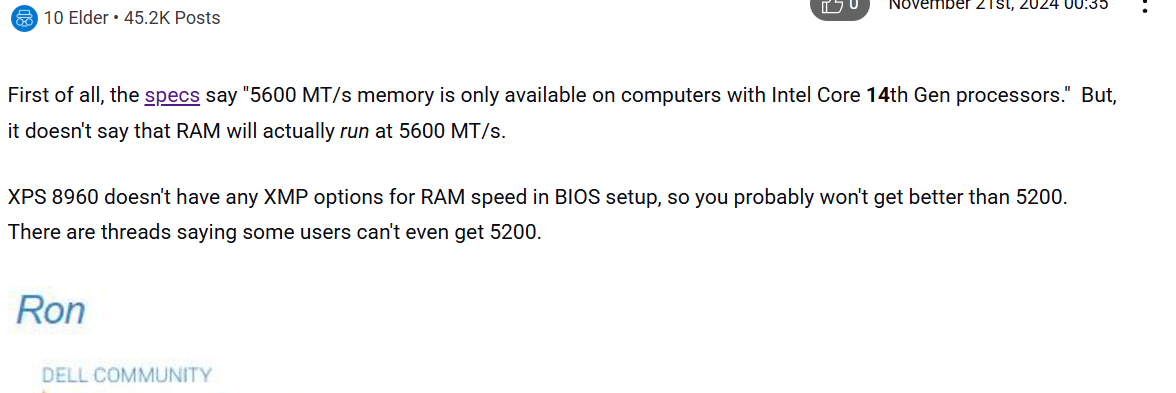 Please note that the XPS 8960 does not offer an option to adjust RAM speeds. I have attached a photo for reference.