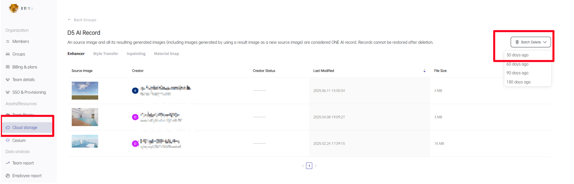 For security reasons, we currently only support team owners deleting all AI records older than 30 days at once in the admin console, which is only available for D5 Teams. This deletion is irreversible.
