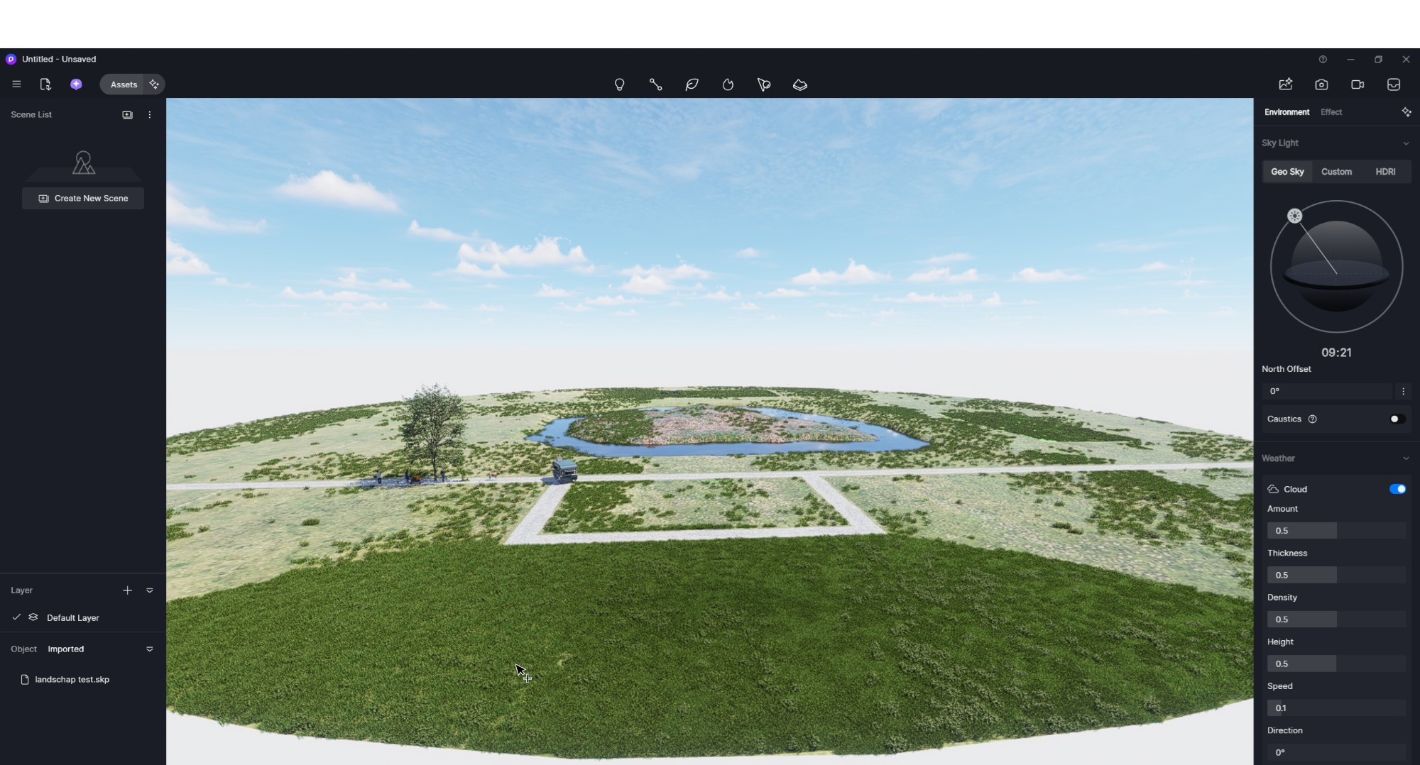 Thanks for your instructions. That’s going well. The only thing left is to define the areas in the landscape where different surfaces will be placed. For example, the landscape within the moat is a separate area, and there are other areas outside the moat that need separate surfaces. In Sketchup, I’m trying to indicate this distinction with components and planes, but it’s not fully reflected in D5 yet. Any tips for this?