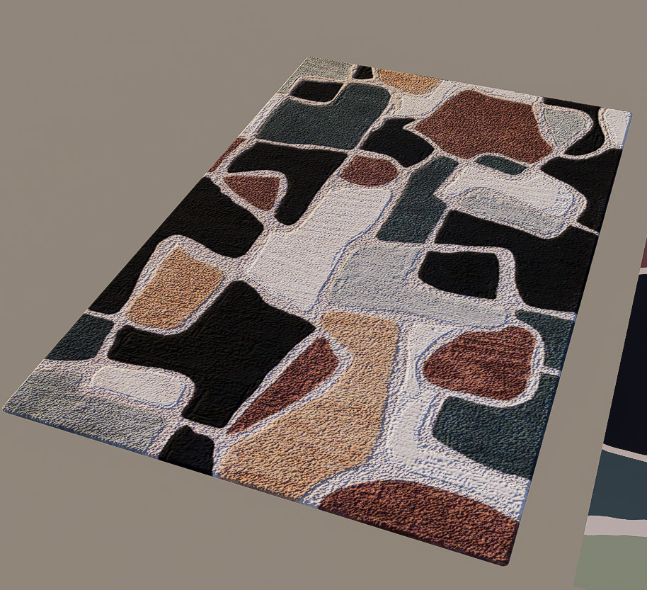 For now, using the method described above, you’ll need to draw a rug in your modeling software with a different material for each color and a grass brush. Alternatively, you could ask Nano B to generate the material after your rendering (probably faster).