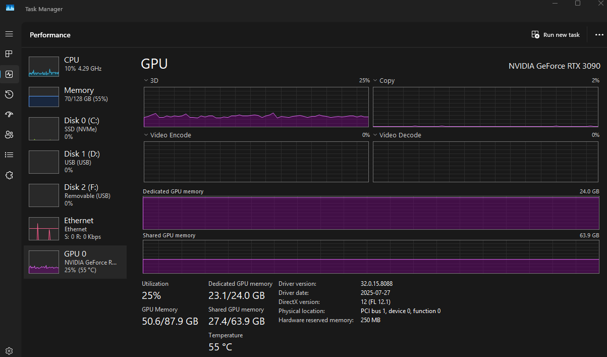 The image you shared shows your VRAM usage exceeding 90%. When dedicated GPU memory usage reaches 80% or higher, the core performance of the graphics card begins to degrade and may become unstable. At this stage, D5 might experience lag, or even display pop-up error messages or crashes.