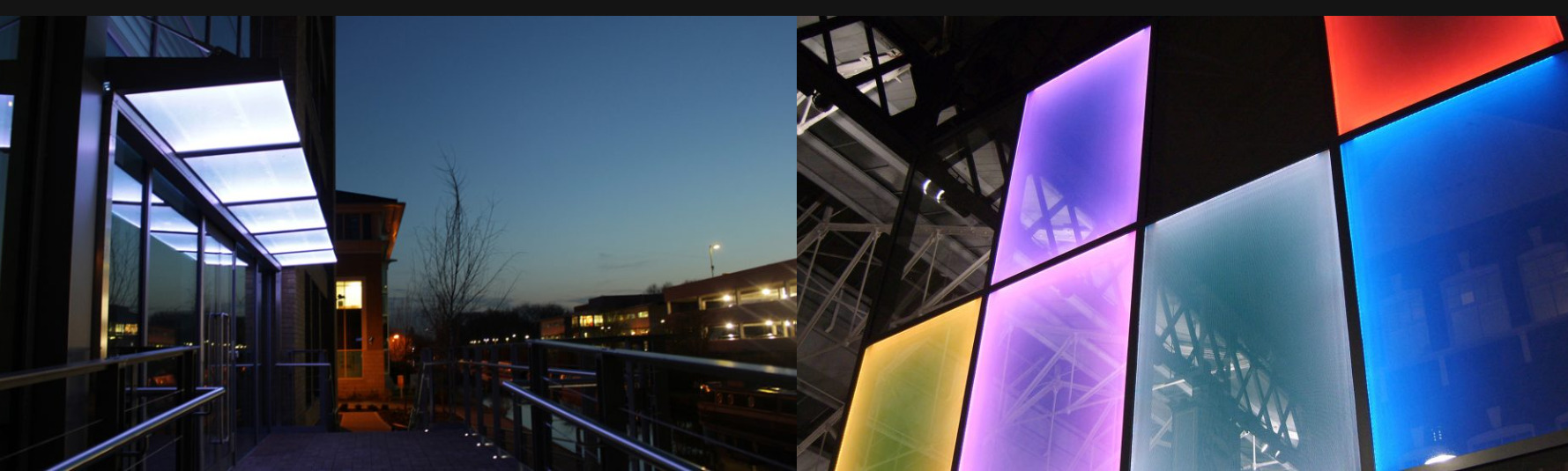 Lit from within frames along one or two opposing edges, light diffuses through a dot matrix pattern to produce bright, even panels of light.