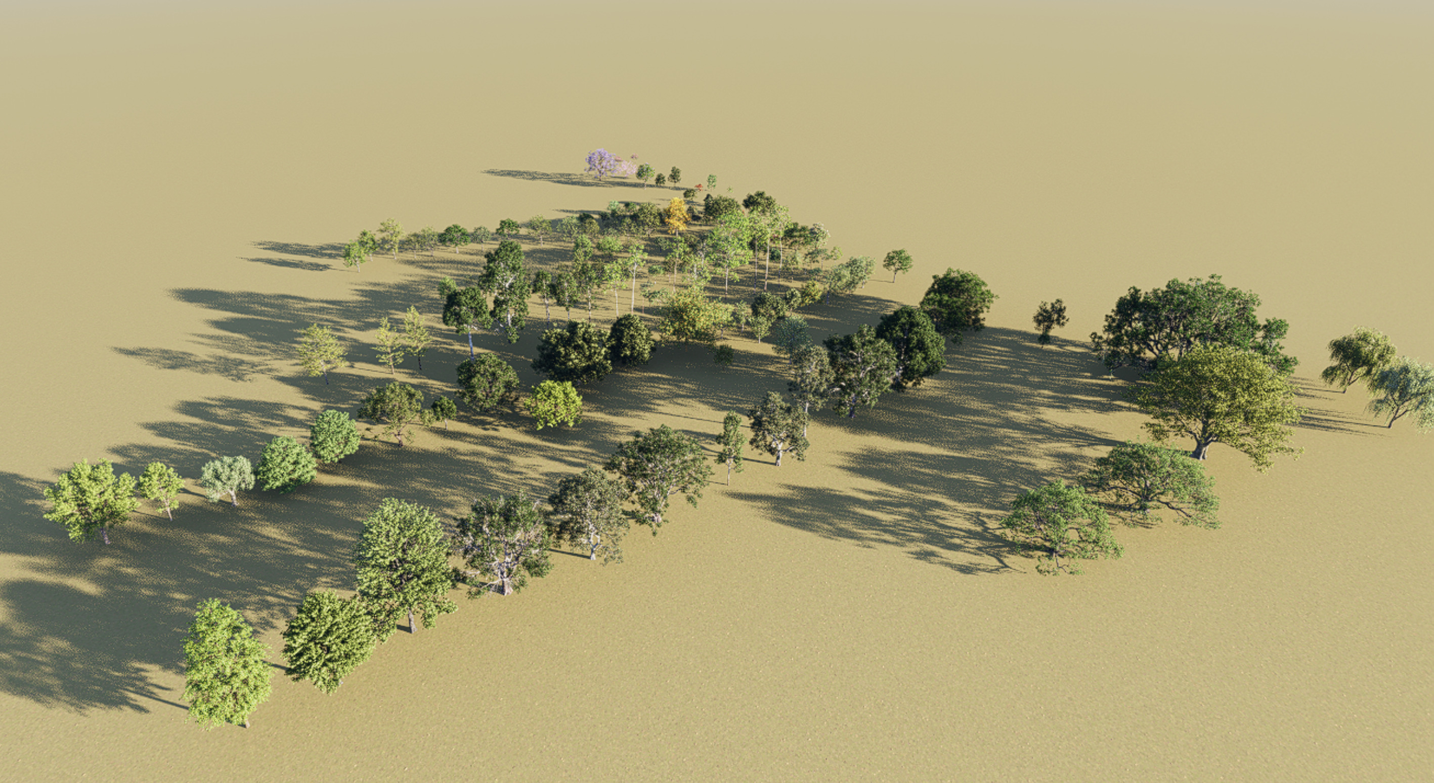 The orginal file indeed is quite heavy (13Go of assets), I try to make a file where I can preview all trees. When I start rendering, it fails at the end.
