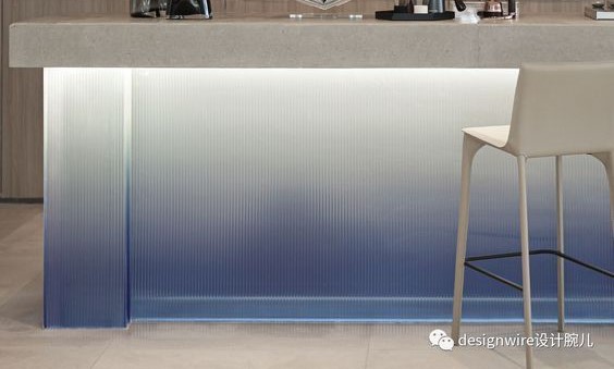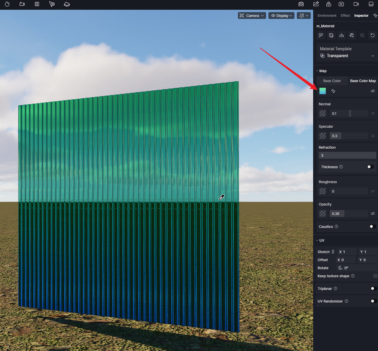 You may try using a fluted wall panel object (3d Model) > change its material template to Transparent > Insert the Gradient color in Base Color Map > Set Opacity