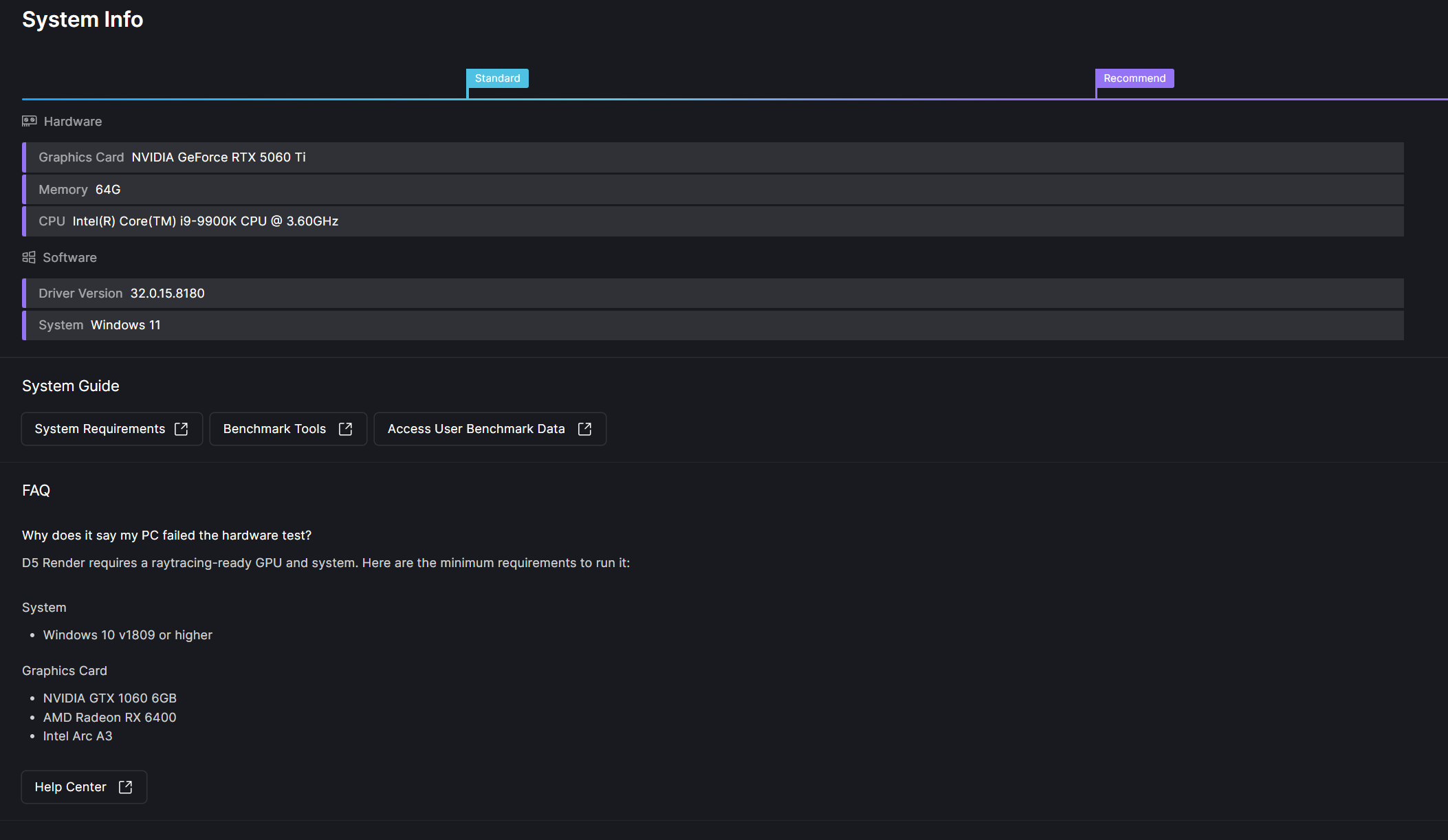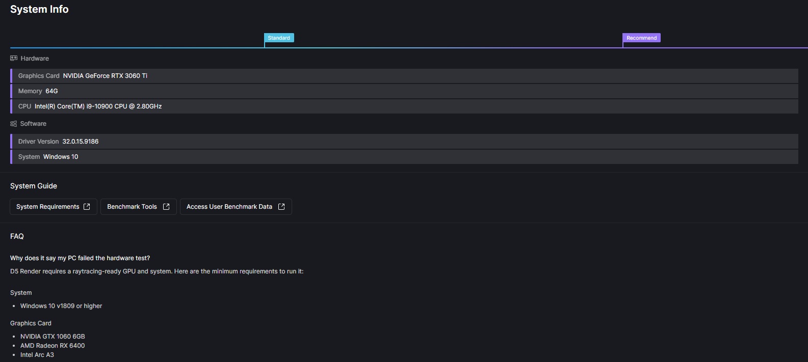 “This is the current configuration. We have tried both the latest drivers (591.74) and a downgrade to version 581.81, but the issues persist. These problems started following the installation of D5 Render updates 3.0.0 and 3.0.1.”