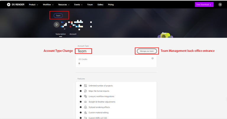 “Manage your Team” option is only available for D5 Teams. Based on your screenshot below, you’re using the PRO License. If you also have an existing D5 Team subscription, try logging out, then you will be asked to select which identity to log in