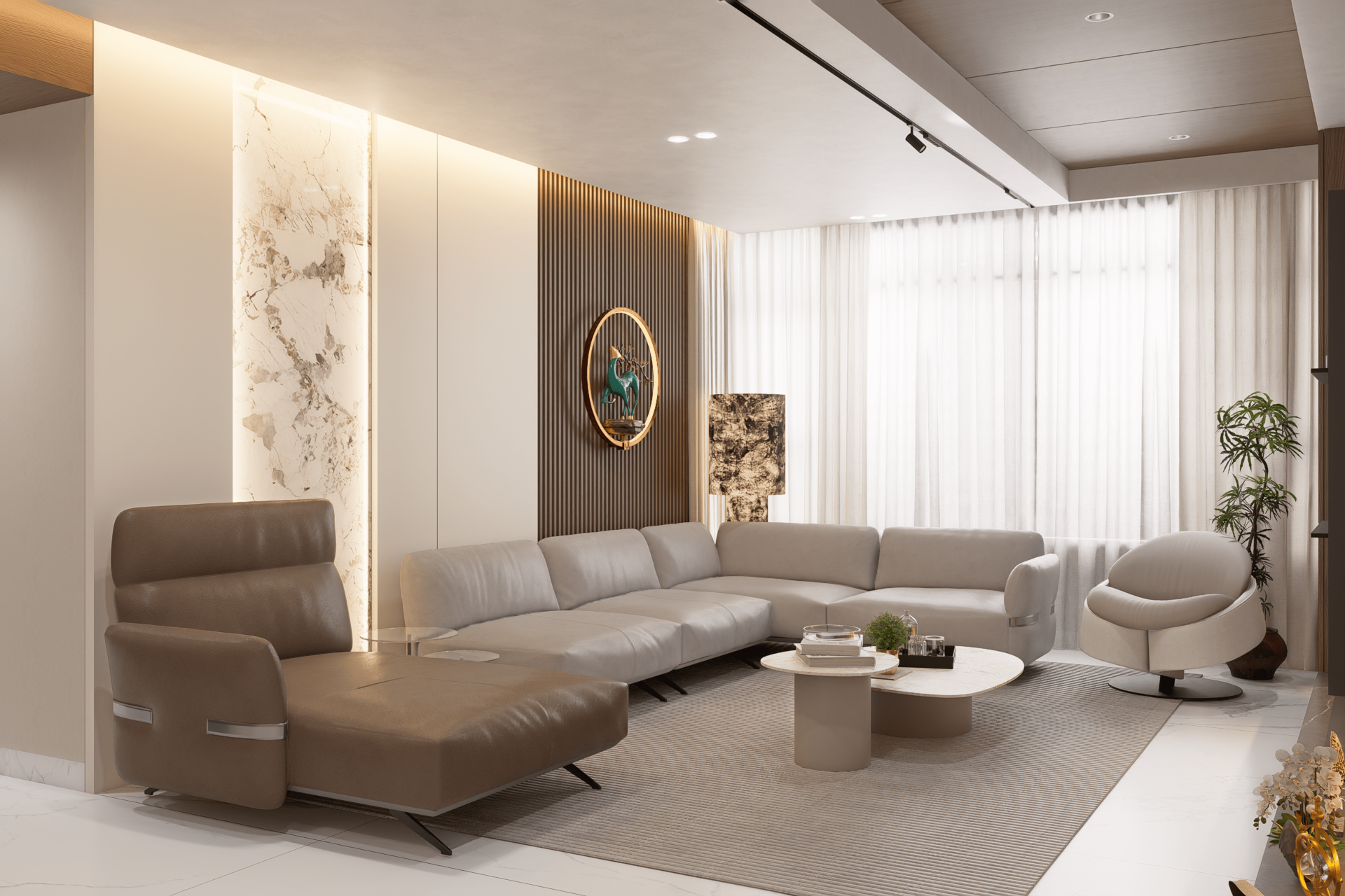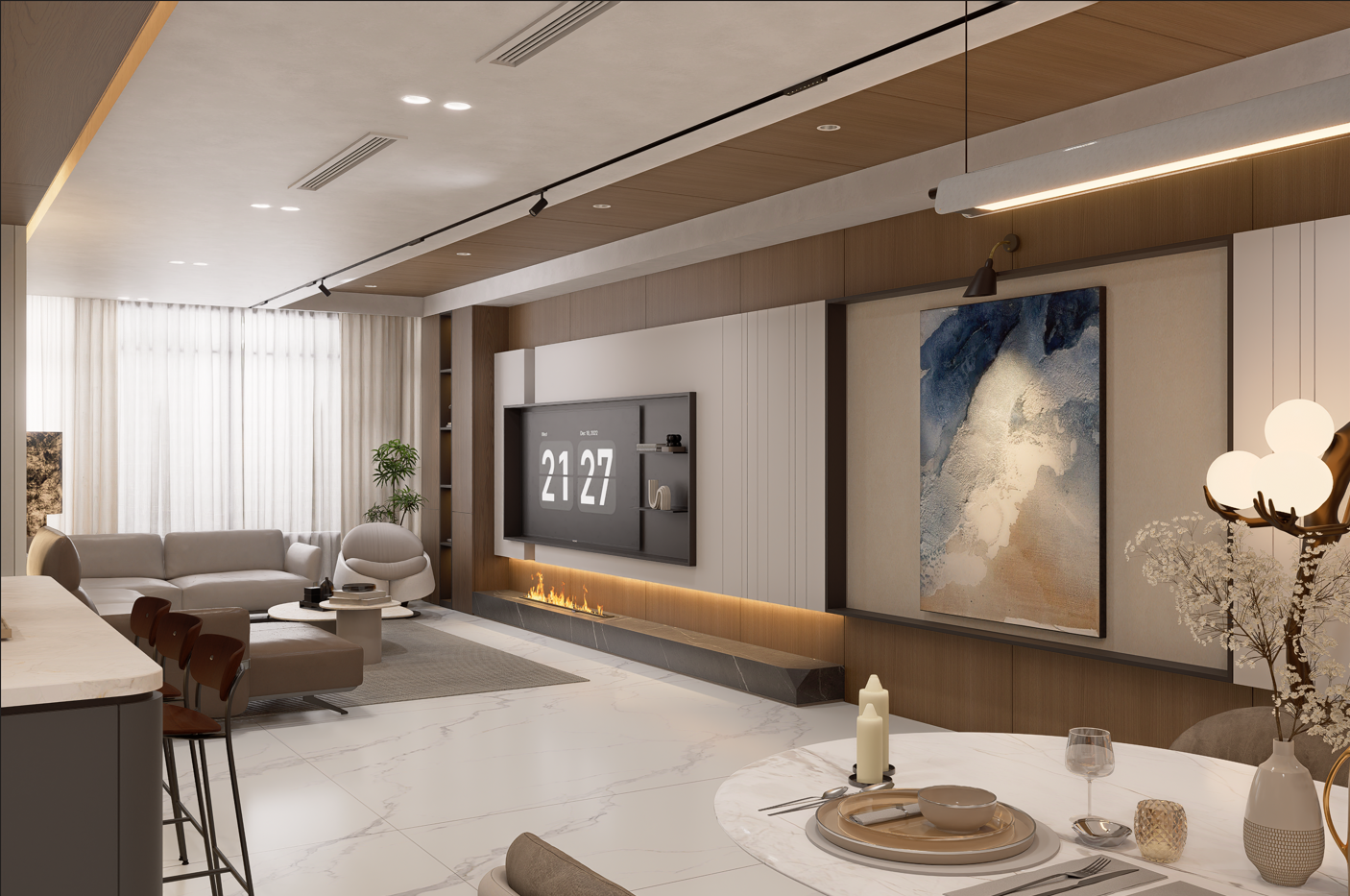 Warm tones, ambient lighting, and a seamless open layout bring this interior to life.