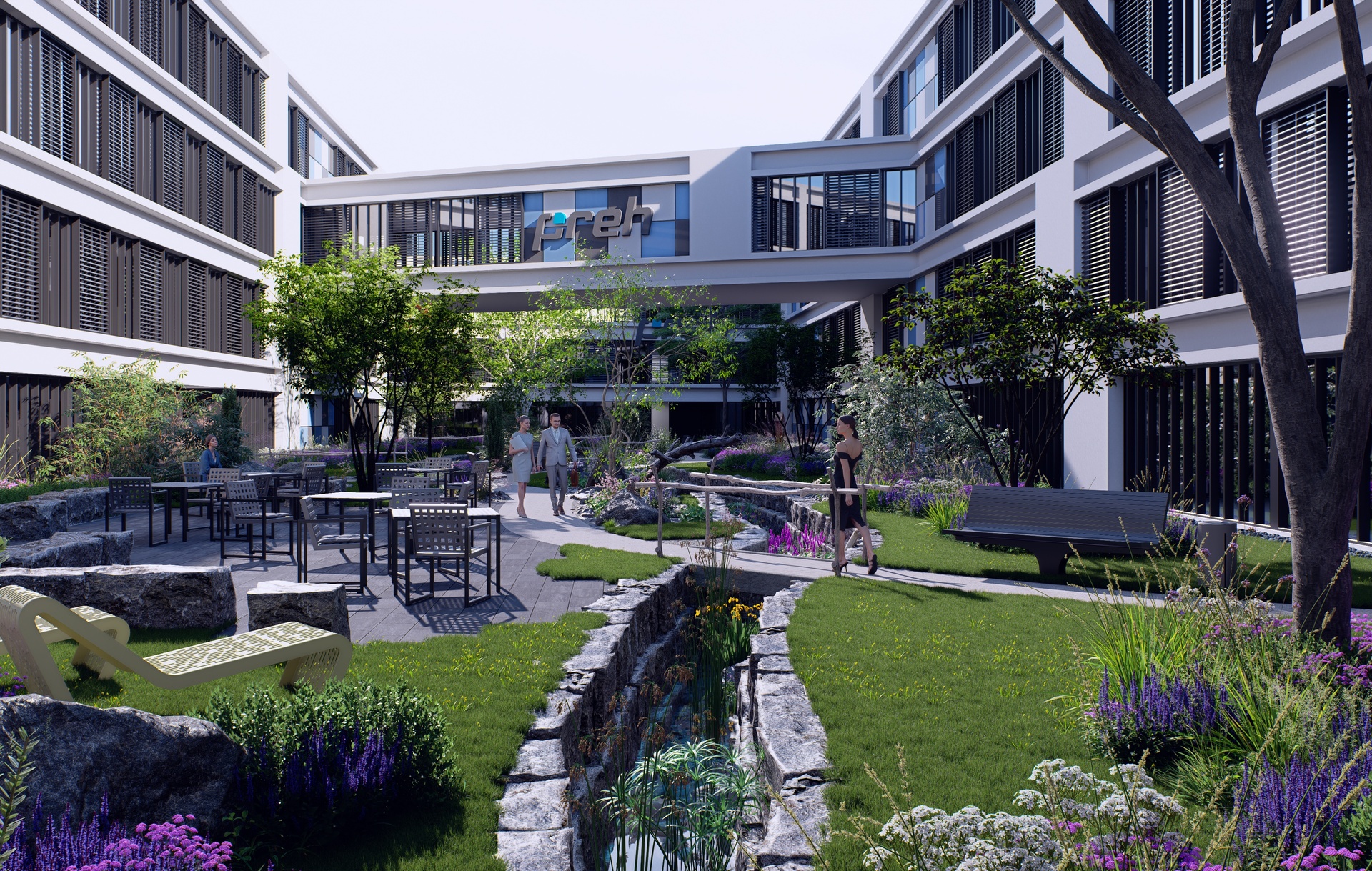Description of the work: WIP Render scene of a natural office backyard garden project as a learning by doing project. Idea to this project came from this real natural project in germany :