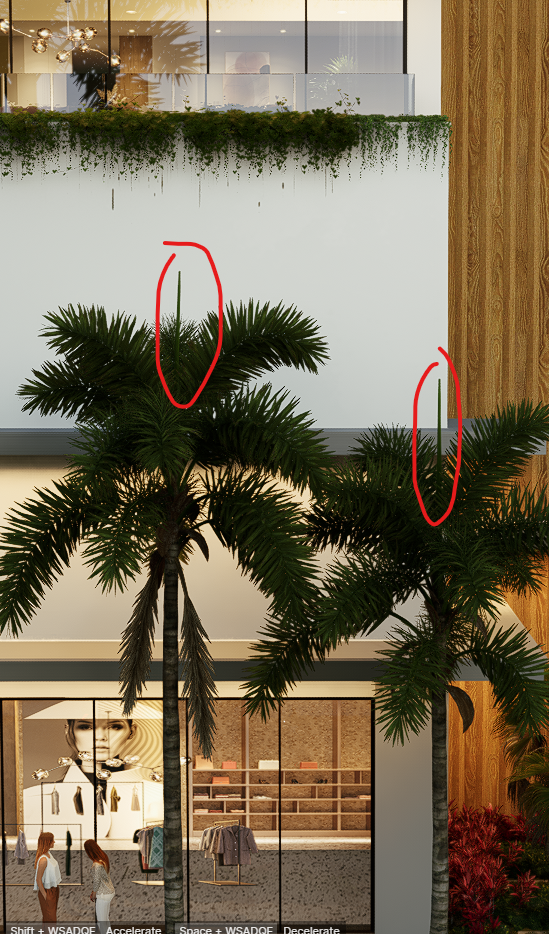 Hi. The new palm trees Syagrus sancona 05 and 06 have this weird thing on their model. Some sort of pointy polygon coming out of the top.
