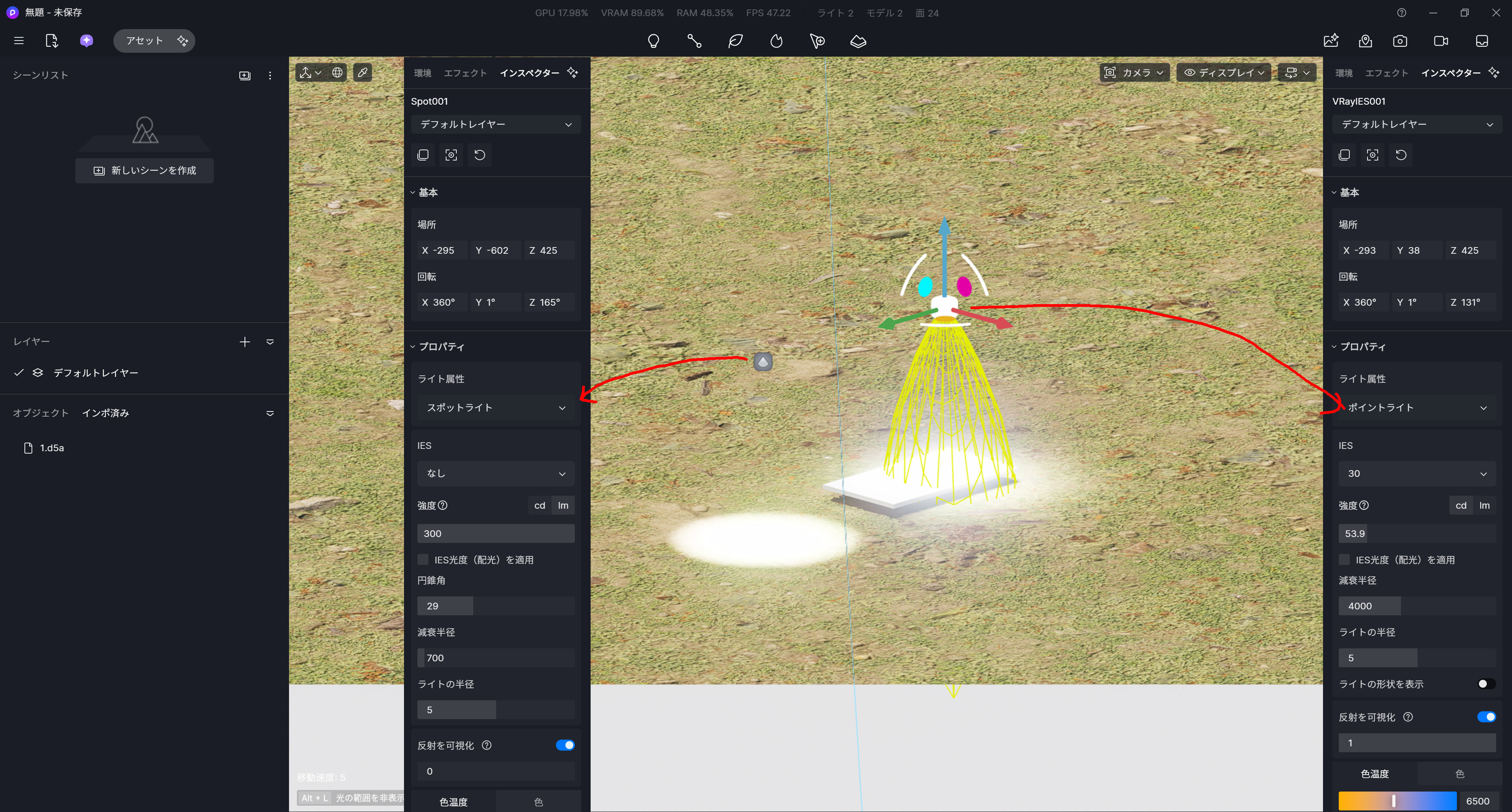 When transferring lights from 3ds Max to V-Ray, spot lights keep their IES profiles, but they are converted into point lights, so be careful.