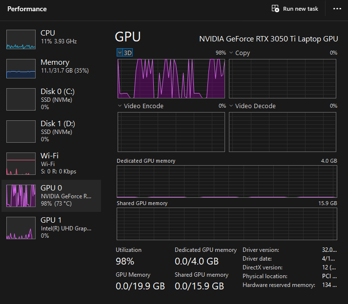 VRAM: Try to open this portion with your D5 file opened at the same time. Based on the image you sent, you only have 4GB of VRAM, which is generally inadequate for running heavy scene files.
