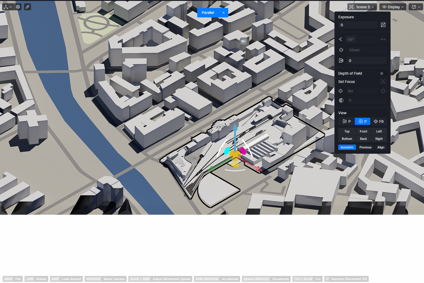 If you meant why the Parallel view does not show the whole buildings around, objects may seem to disappear in Isometric because: