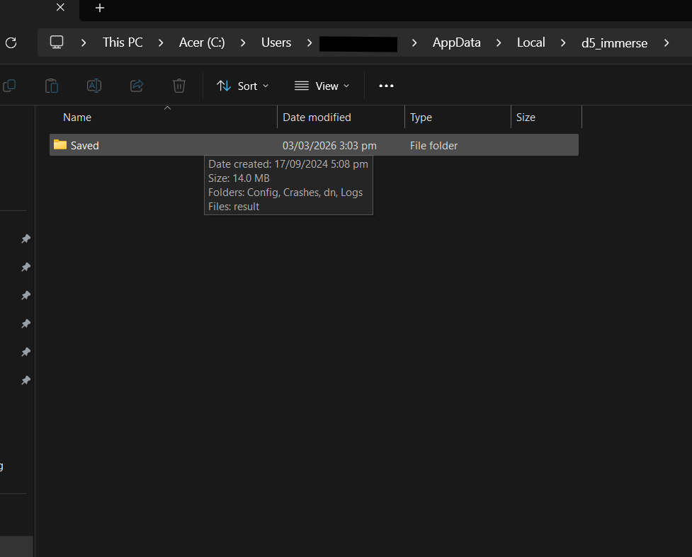 Please locate the Saved folder on your system. After changing a shortcut and closing D5, check the Saved file’s “Date Modified.” Does it update?