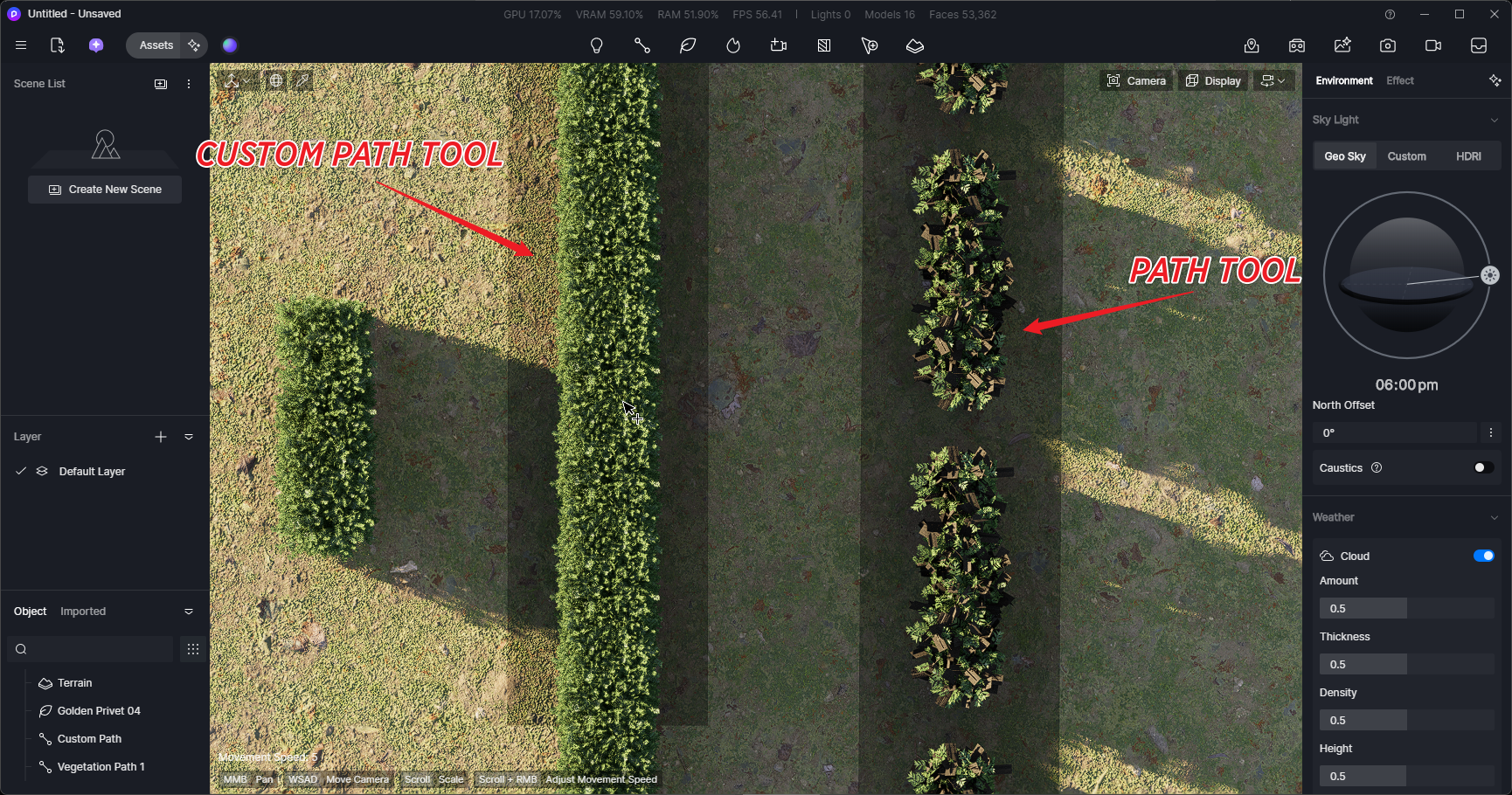 **Issue Description: Problem Opacity Mapping with Golden Privet 04 Model placed on a path in Parralel Top View