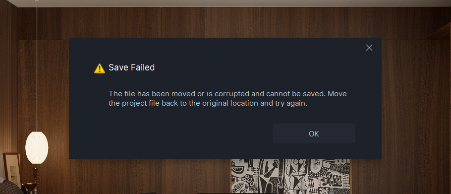 **Issue Description: The project was created and saved in D5 Render version 2.10. After saving, the project file size was only 70 KB. When trying to reopen, D5 showed the error: “Unable to open. The project file is corrupted.”