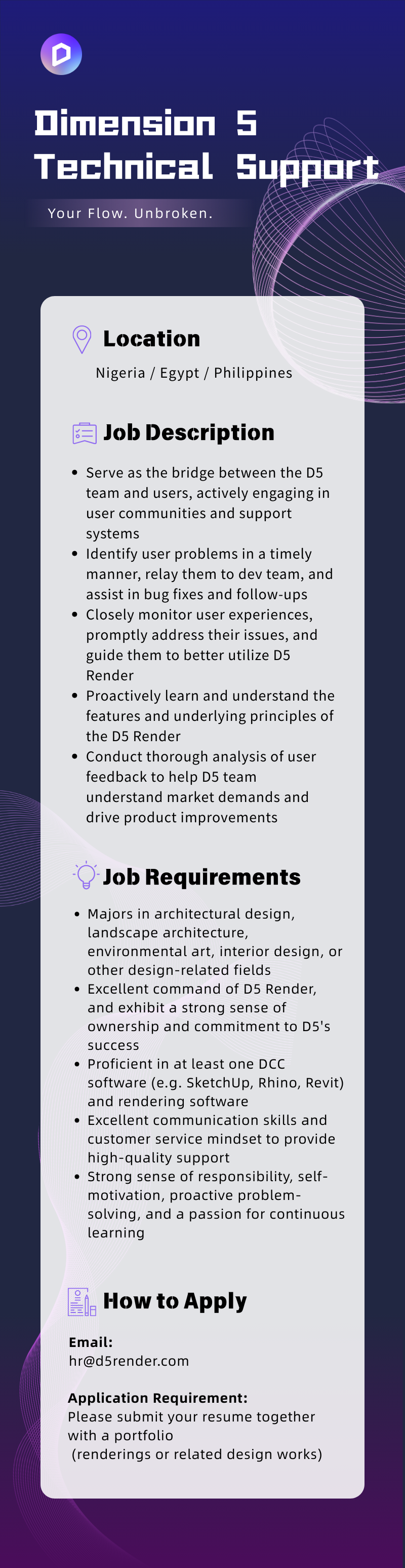 Join our dedicated D5 Render Support team and become the trusted liaison between our product and our users!