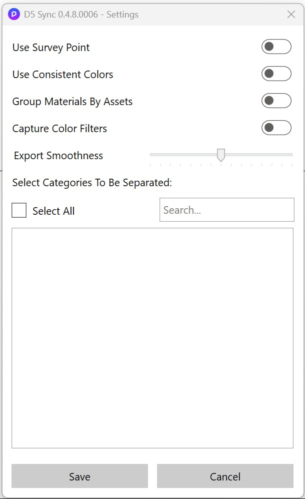 Not exactly sure why but it seems to be working now. Maybe it needed a system reboot. Here are my settings for D5 Sync. But now I have a new question-- why are only some elements adopting the color fill cut but my Revit walls are not?? I’ll add that screen shot here as well.