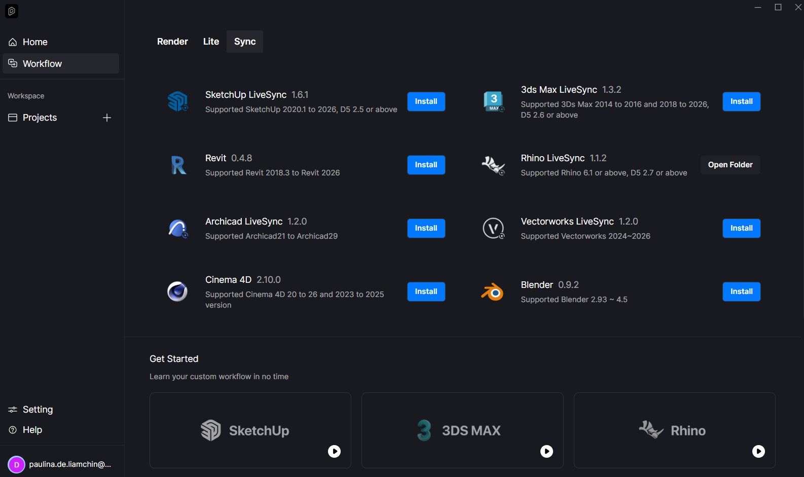 (8.25.25314.11001) and the Live Sync plugin (D5_Live_Sync_Rhino_usa_1.1.2.0005.exe)