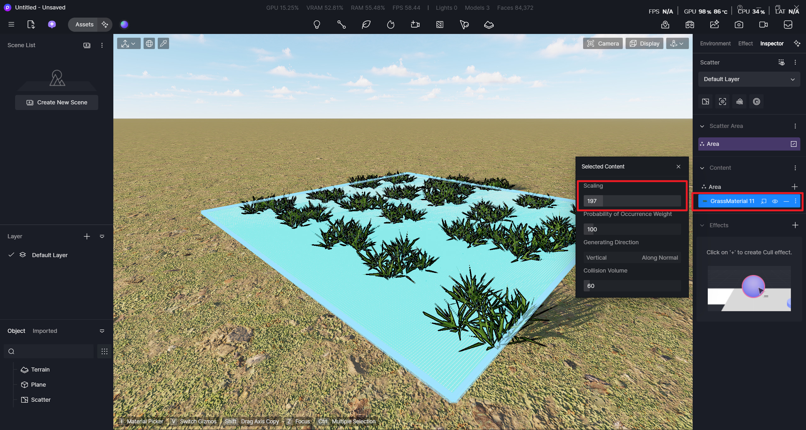 When you use the ‘new’ Scatter, you’ll see the vegetation list on the right.