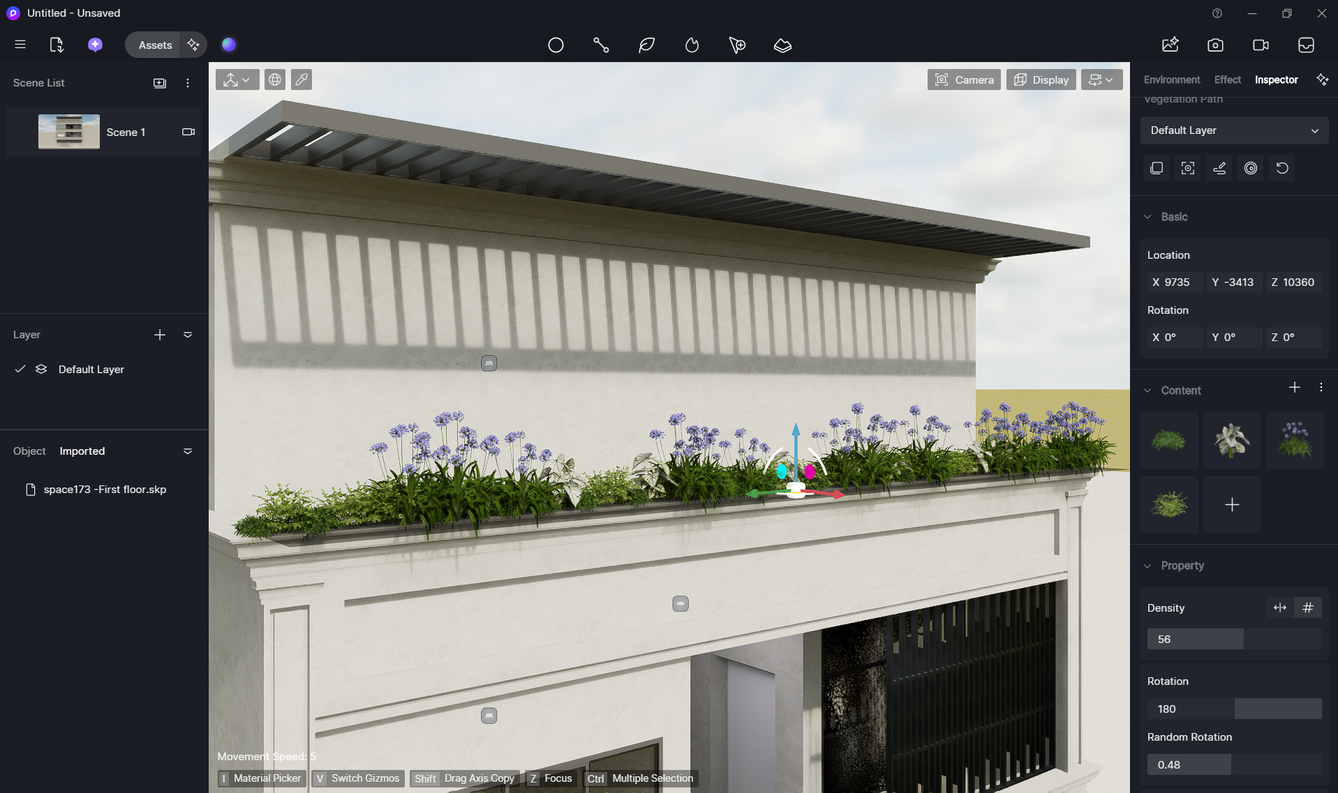In this vegetation path it would be ideal to make just the violet flowering plant smaller and the Sasa Longiligutala larger, but there is no ability to set scales for them individually.