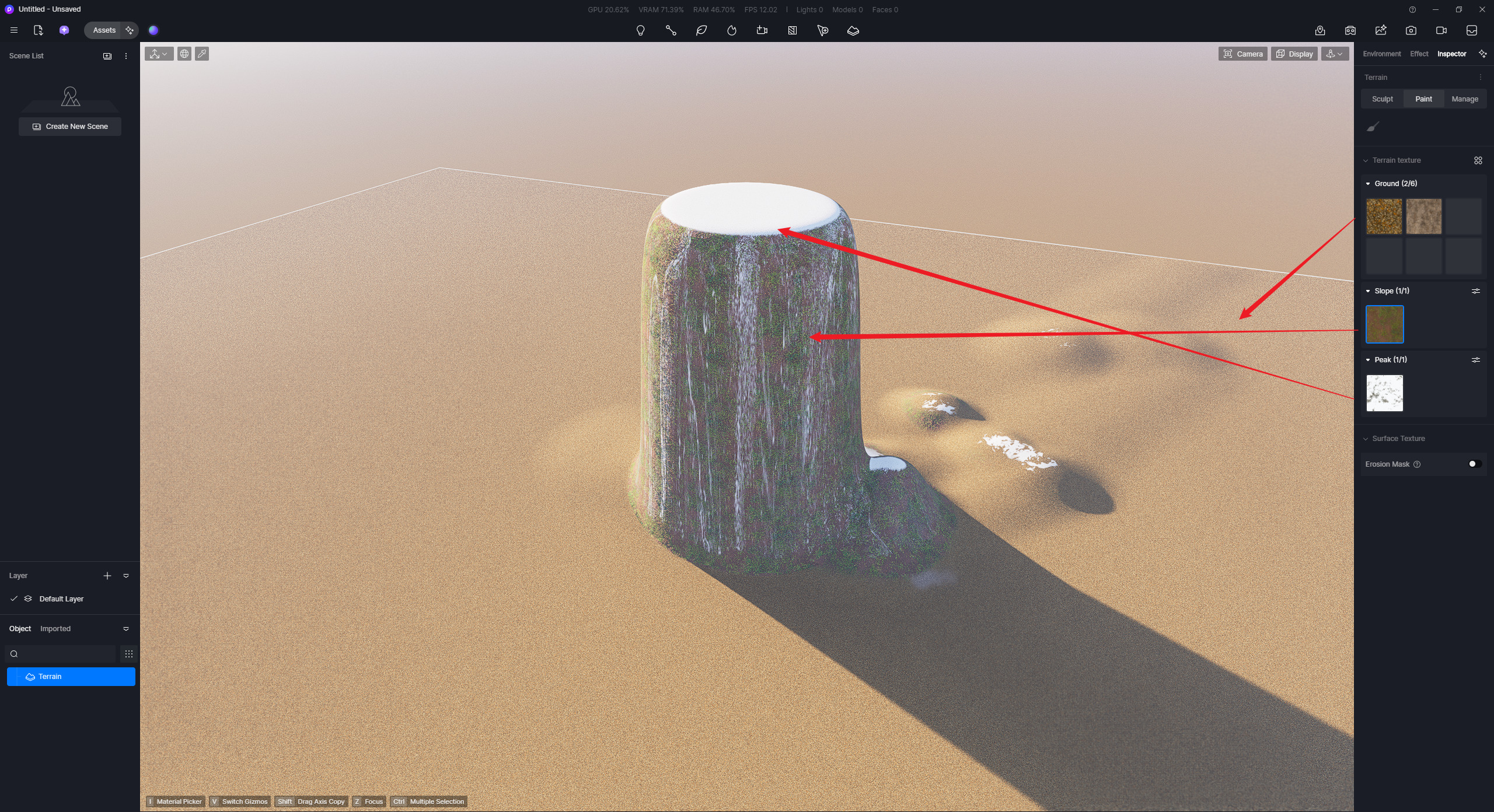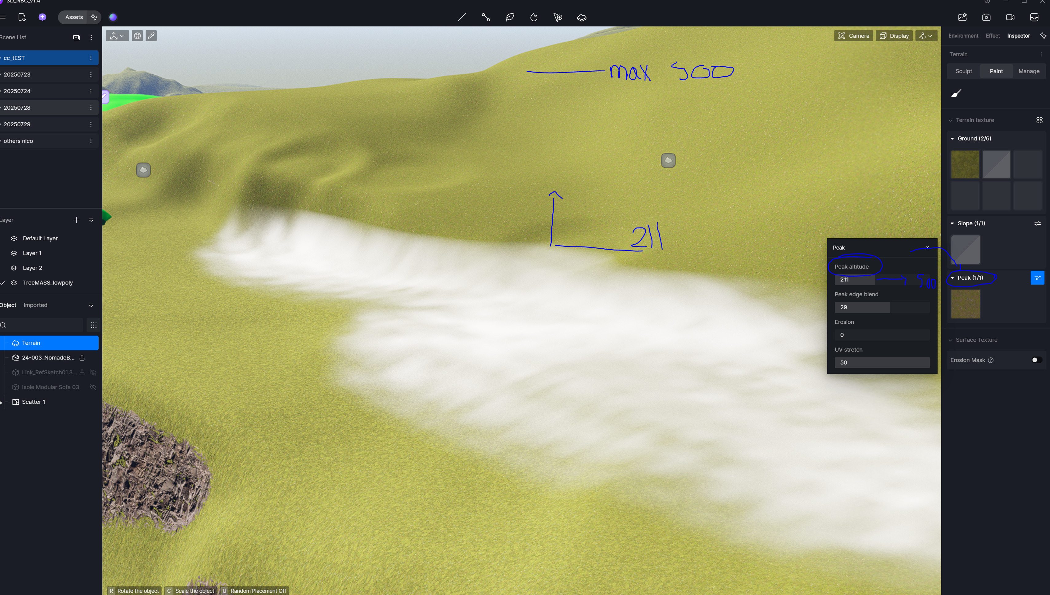 If I understand correctly, the max altitude for my sculpted terrain is 500 ? Because passed this value I cannot have a “ground material”; I cannot paint any ground material. Is it correct?