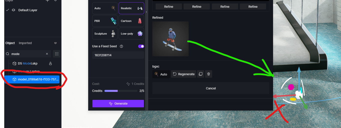 As you can see in the images above, I have generated a model, and it will import to the model, but it does not show anything