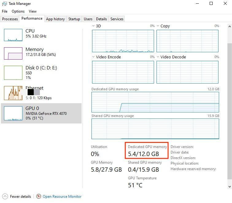 The message “Out of video memory” usually occurs due to insufficient GPU memory. D5 relies heavily on Dedicated GPU memory and generally may crash if the video memory usage exceeds 80%.