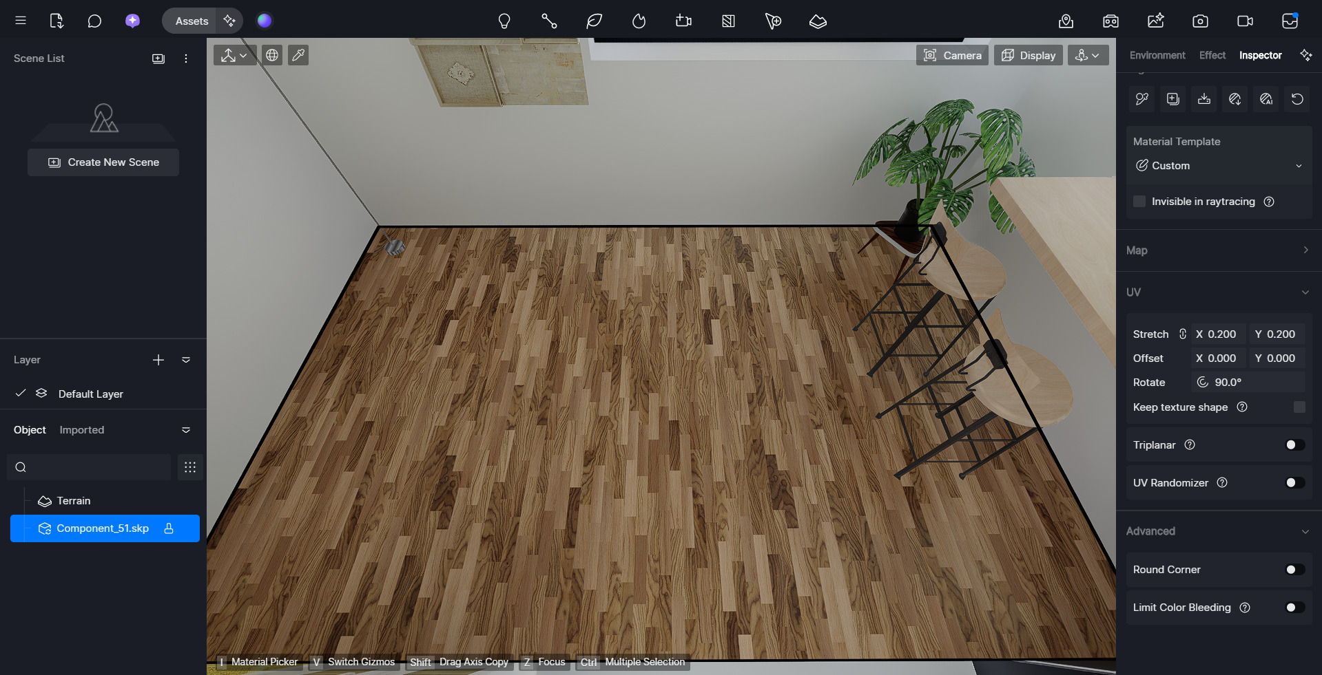 it’s an old file. i updated D5 and opened the file in 3.0 and applied this texture to the floor and probably changed scaling before rotating.