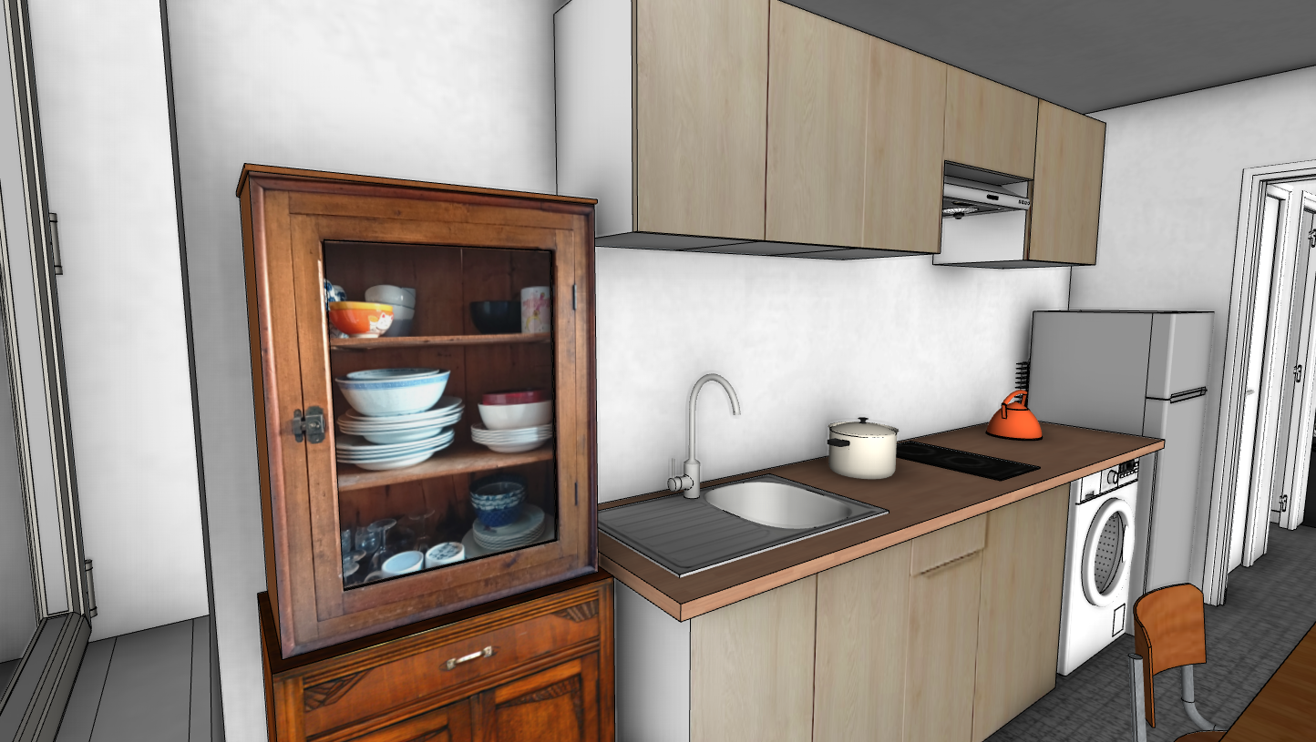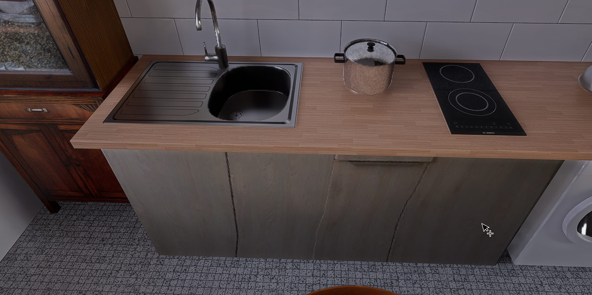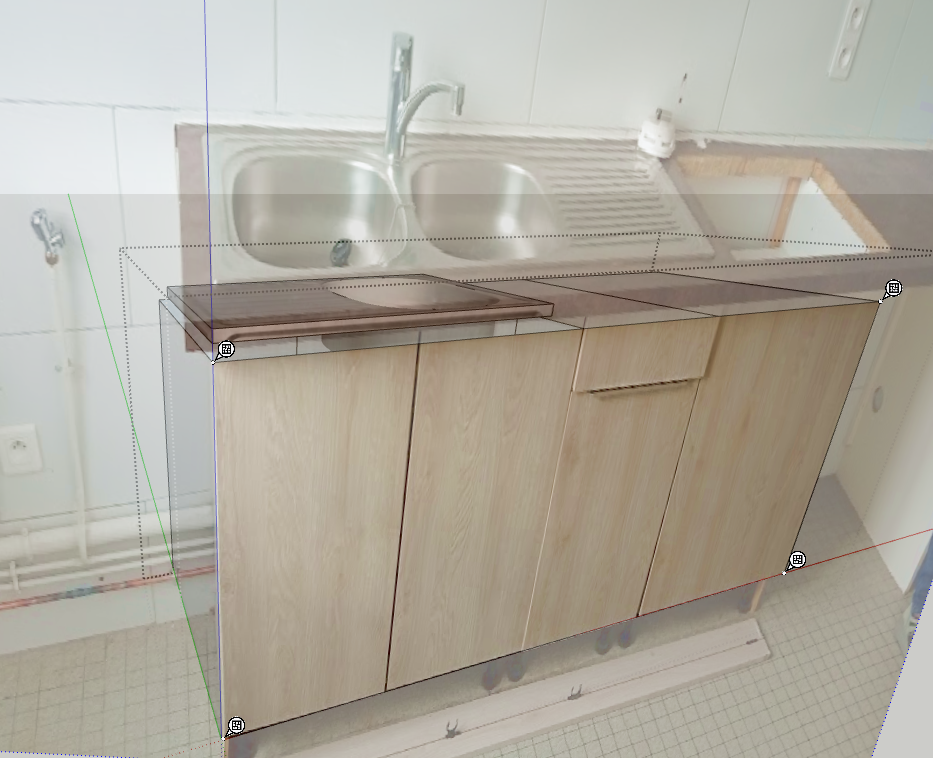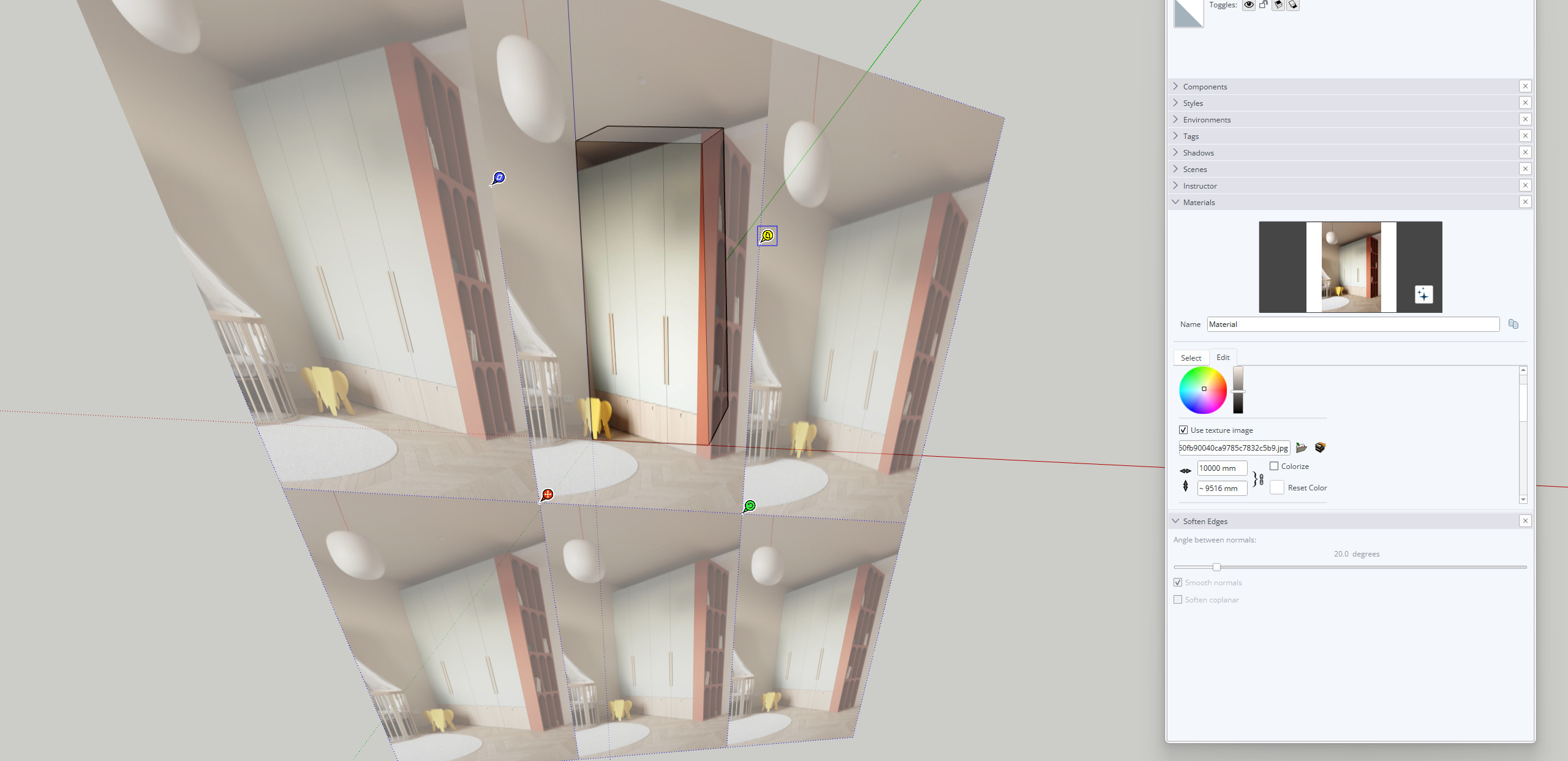here’s my problem: the photo texture on the kitchen cabinets was applied using SketchUp’s texture editing tool, but Digital 5 is distorting it. I’ve never seen this before.