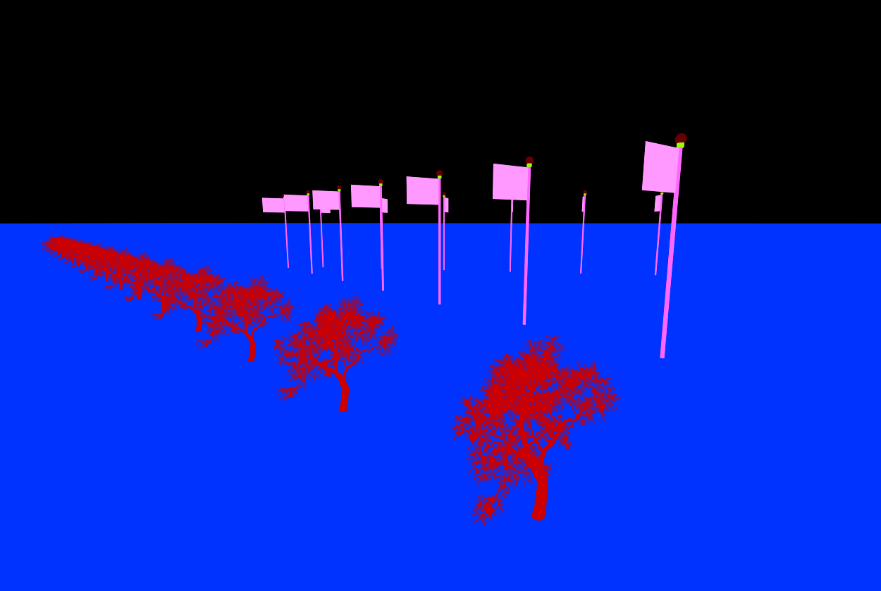 The plants are from the Online Library, while the flagpoles are from local; both of them are used with the Custom Path Tool